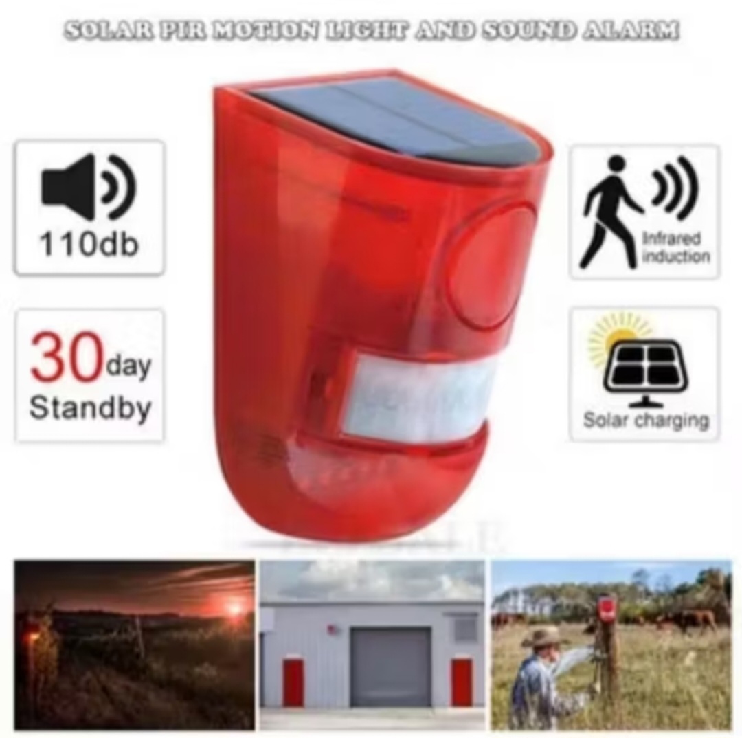 chống trộm Hướng dẫn sử dụng: Nhấn giữ nút khởi động , sau khi khởi động chuông sẽ nháy đèn và kêu lên. Sau khi đợi hết chuông và nháy đèn bạn bấm thêm 1 lần nút khởi động để chọn chế độ 1. Sau khi chọn chế độ 1, chuông sẽ cần 10 giây để thiết lập chế độ làm việc bằng cách nháy đèn, khi chuông hết nháy đèn là bạn đã thiết lập xong chế độ làm việc 1. Làm tương tự để chọn chế độ làm việc 2-3-4. Mỗi lần chuyển đổi giữa các chế độ, đèn mất 15~20 giây để thiết lập, bạn hãy đợi chút nhé !!! Chế độ làm việc: - Chế độ 1 : Phát sáng và báo động ( cách kiểm tra: dùng tay chạm vào phần nháy đèn = phần cảm ứng hồng ngoại ) - Chế độ 2 : Nhấp nháy 24 giờ mà không báo động ( cách kiểcm tra: dùng tay chạm vào phần nháy đèn = phần cảm ứng hồng ngoại ) - Chế độ 3 : Buổi tối phát sáng và báo động ( ban ngày không hoạt động) (cách kiểcm tra: dùng tay che tấm pin năng lượng mặt trời) - Chế độ 4 : Buổi tối nhấp nháy không báo động ( ban ngày không hoạt động ) (cách kiểcm tra: dùng tay che tấm pin năng lượng mặt trời) Khi báo động chuông sẽ nháy đèn/kêu lên trong vòng 1 PHÚT. Chức năng : - Đèn LED: 6 chip Led màu đỏ nhấp nháy - Chất liệu: Nhựa ABS - Chế độ sạc : sạc năng lượng mặt trời - Thời gian sạc : 6-8 giờ - Thời gian làm việc: Cảm ứng 45 giây phát sáng và báo động tối đa 300 lần, sạc đầy 1 lần dùng được 30 ngày - Âm thanh báo động: 129dB - Chống thấm nước: IP65 - Pin: 3.7V . 400mA Lithium - Khoảng cách cảm ứng: 5-8 mét (bị ảnh hưởng bởi nhiệt độ môi trường), góc cảm ứng: 110 ° - Kích thước: 70x70x120mm