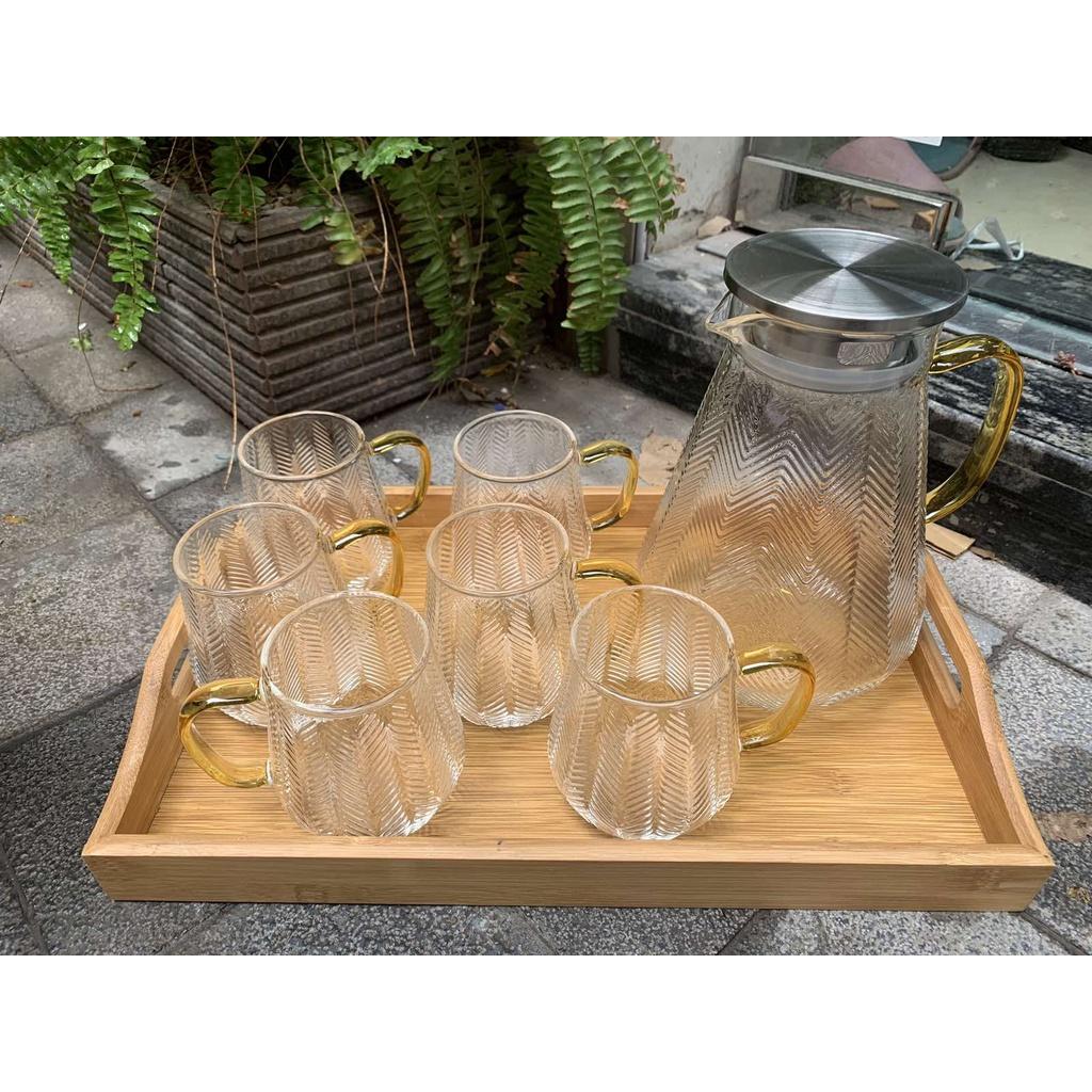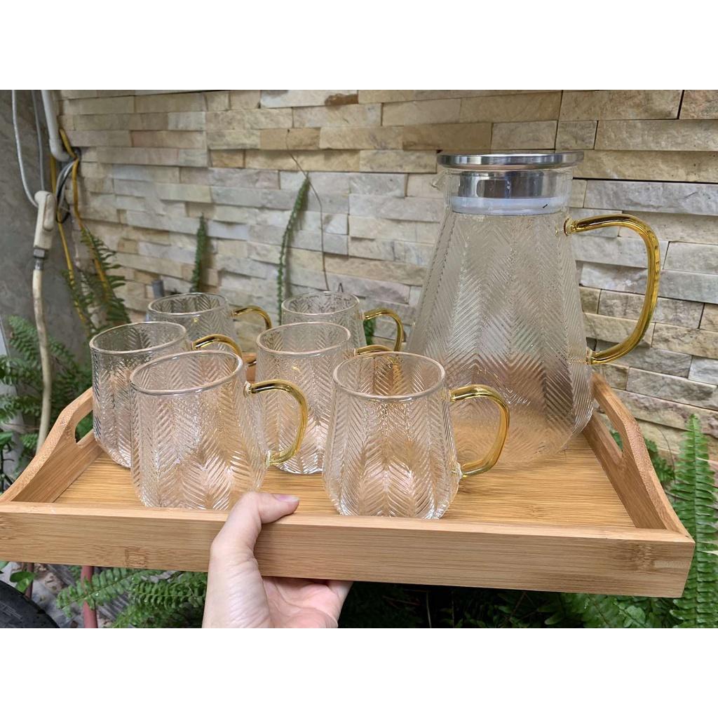 Bộ bình 6 cốc thủy tinh chịu nhiệt pha lê sang trọng#giadungtienich