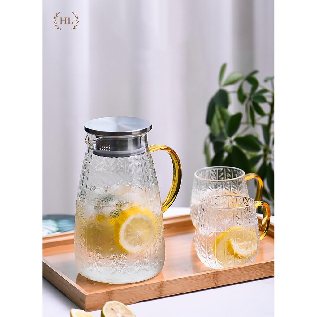 ✨Bộ bình cốc vân lá liễu dập nổi | BỘ BÌNH CỐC THỦY TINH CHỊU NHIỆT BOROSILICATE SIÊU BỀN SIÊU NHẸ CAO CẤP KHÔNG Ố MÀU