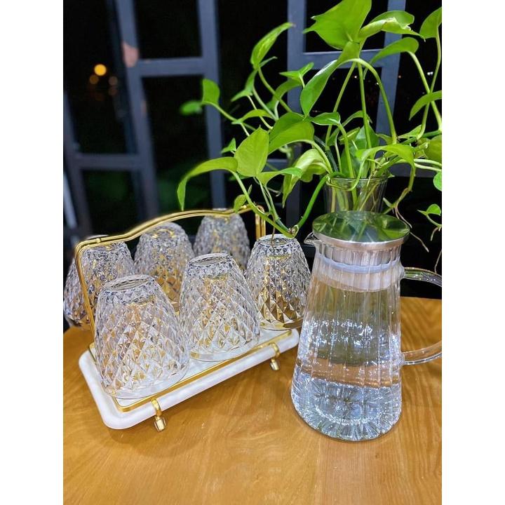 Bộ khay bình nước 6 cốc thuỷ tinh cao cấp