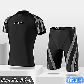 Hãy sẵn sàng cho mùa hè sôi động với bộ đồ bơi nam gồm áo thun bơi cộc tay và quần bơi 2 lớp đầy nam tính và tiện lợi BN032 của Đậu Đỏ bikini