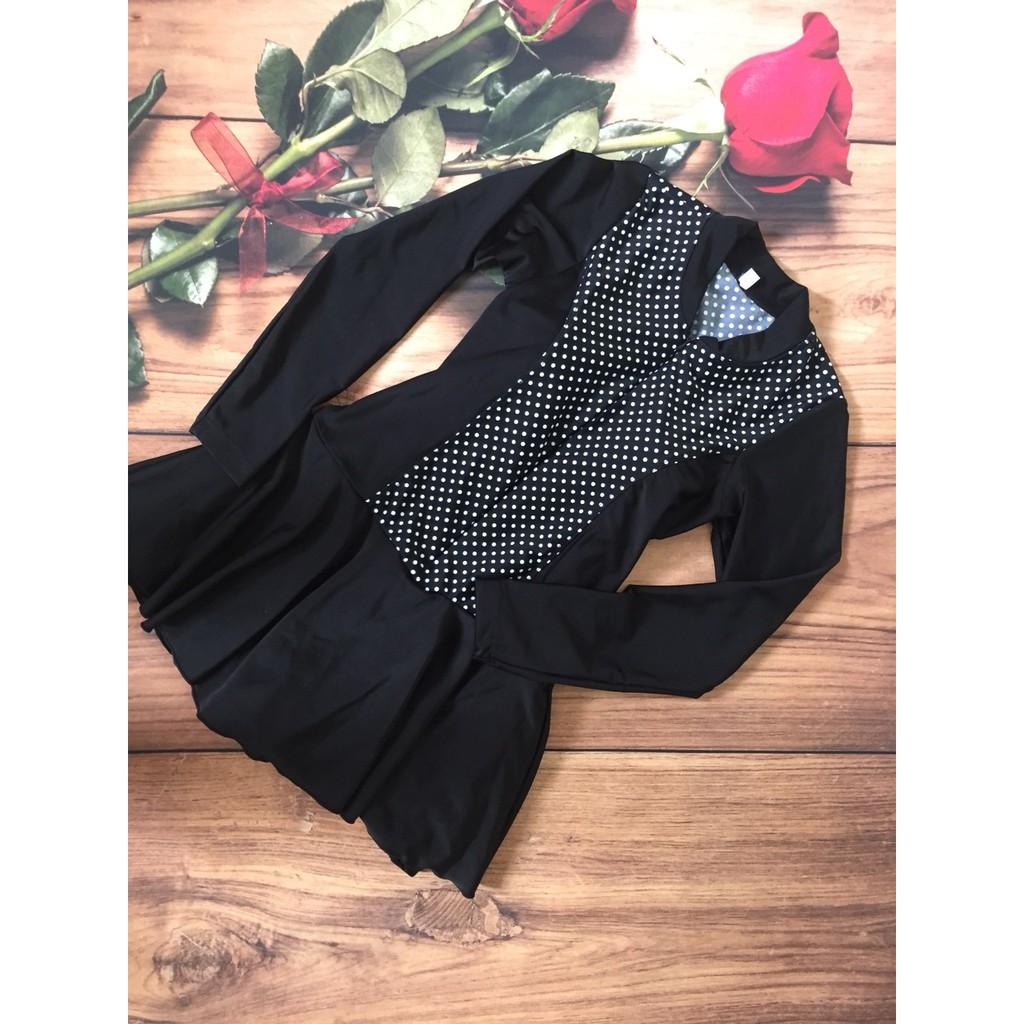 ✨Bộ bơi tay dài nữ đen chấm bi xinh xắn hàng cao cấp kín đáo- tôn dáng - không lo bị nắng ăn-CÓ TẶNG KÈM MÚT & QUẦN VÁY