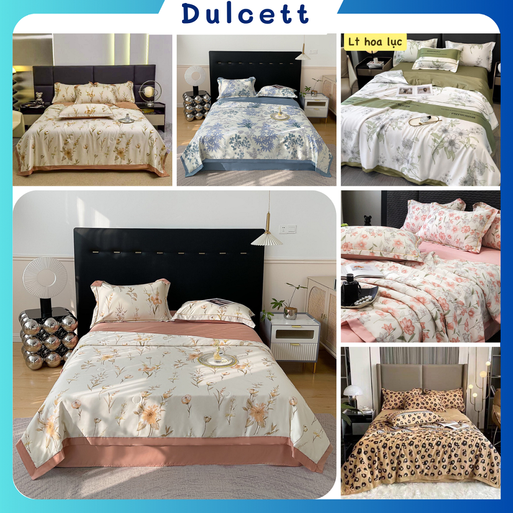 ✨Bộ Chăn Ga Gối Lụa Thái 4 Món ( 1 ga + 2 vỏ gối đầu + 1 chăn chần bông, tặng kèm 1 vỏ gối ôm ) Mềm mịn mát lạnh như kem