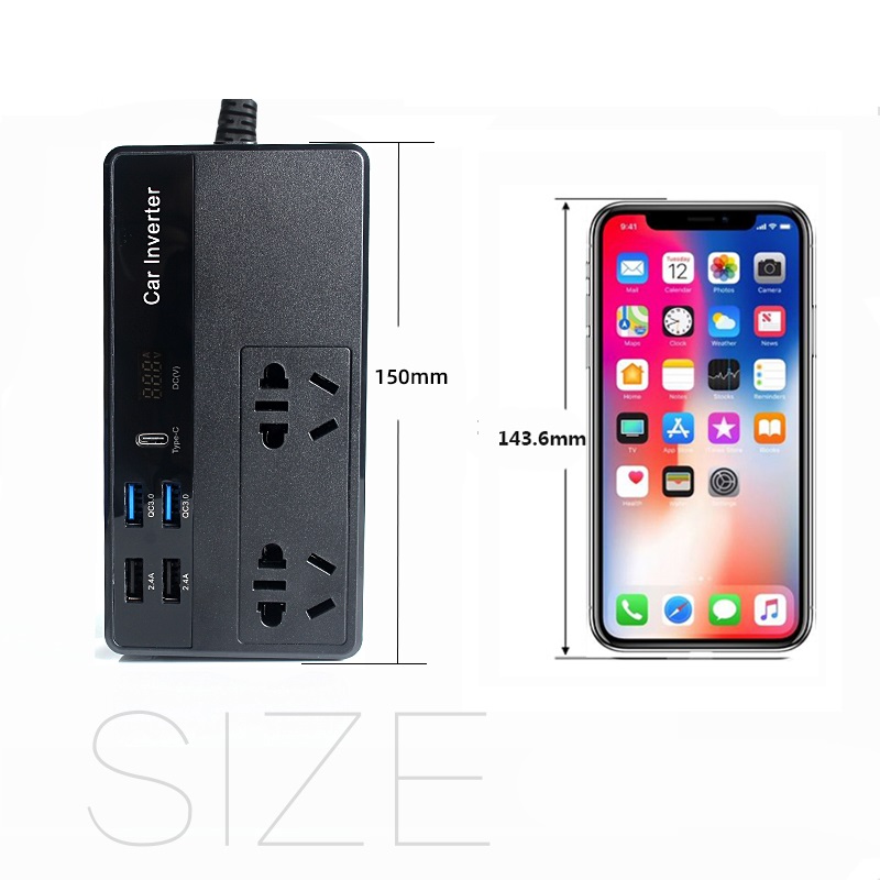 Biến tần có thể chuyển đổi DC thành điện áp xoay chiều 110 V / 220 V và đầu ra USB là DC 5V. Dễ dàng kết nối với ắc quy xe thông qua bật