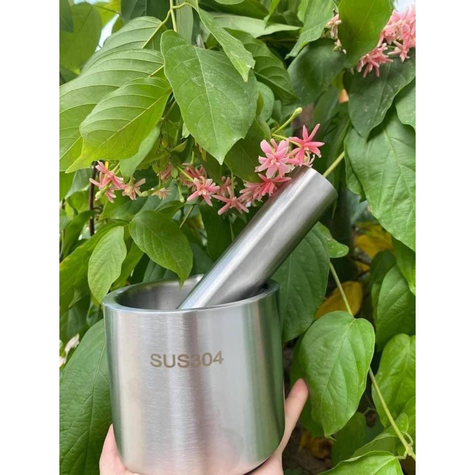 Bộ Cối Chày Inox 304 Chống Gỉ Linh Chi Bedding Cao Cấp Kèm Nắp Đậy Chống Ẩm Mốc Tiện Lợi