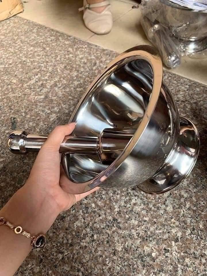 Cối Chày Inox 304 Cao Cấp – Giã Tỏi Ớt, Gia Vị, Thực Phẩm Nhanh Chóng, Sạch Sẽ - Cối chày được làm từ inox 304 cao cấp, bền đẹp, không gỉ sét, an toàn