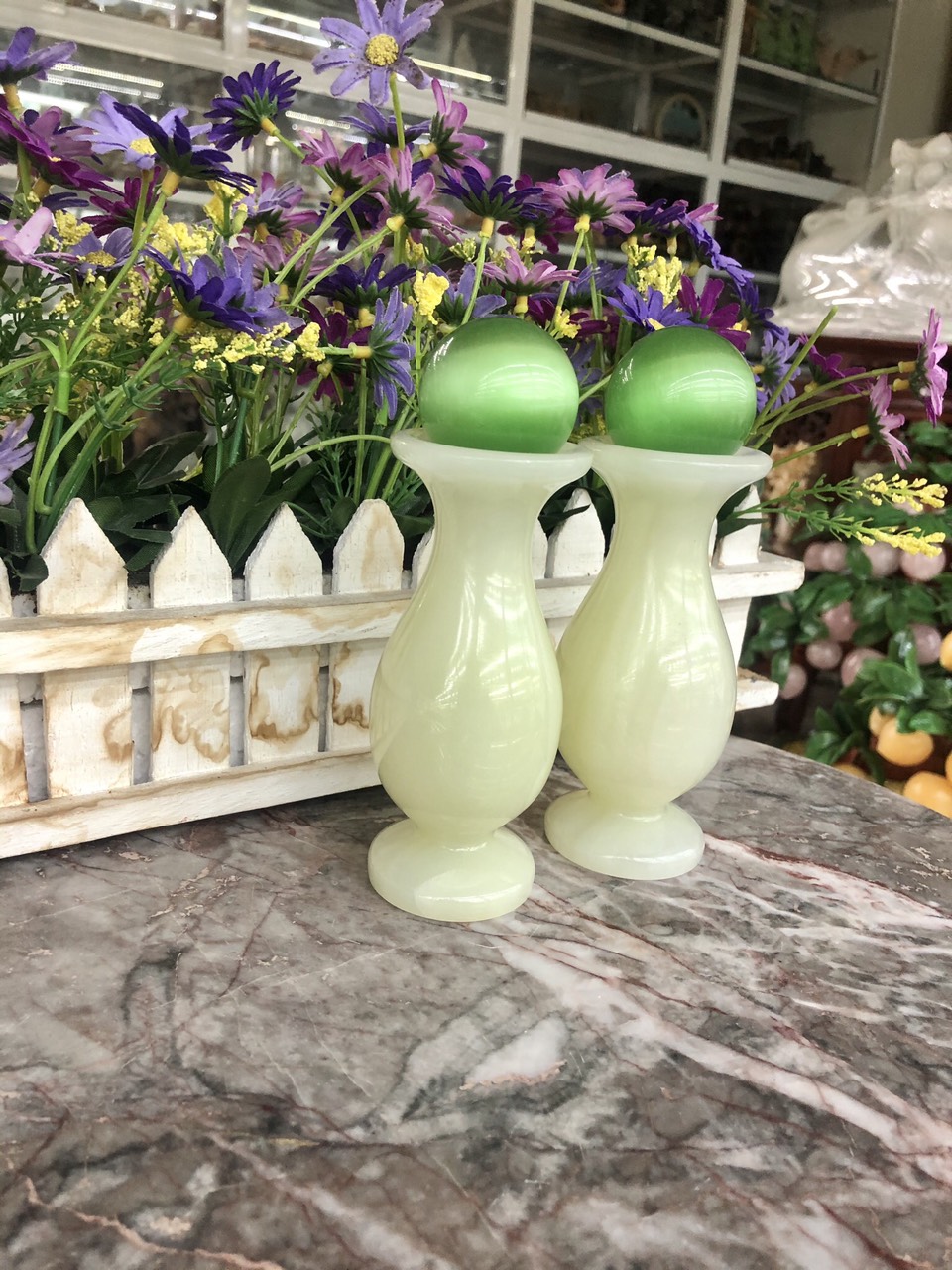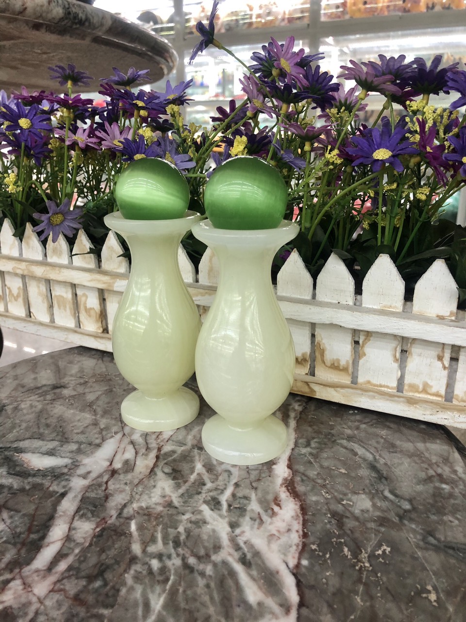 Chất liệu: Đá ngọc hoàng long Kích thước: Cao 11 cm và đường kính 8 cm                     Cao 16 cm và đường kính 7 cm
