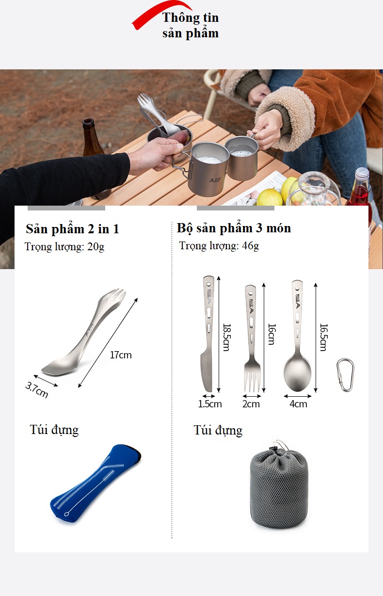 – Tên sản phẩm: Bộ Dao Dĩa Titanium Không Gỉ Dành Cho Dã Ngoại- SK050