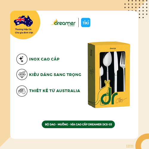 Bộ dụng cụ ăn uống cao cấp Dao Muỗng Nĩa Dreamer DCS-03 bao gồm 1 dao, 1 nĩa 1 muỗng cà phê và 1 muỗng súp.