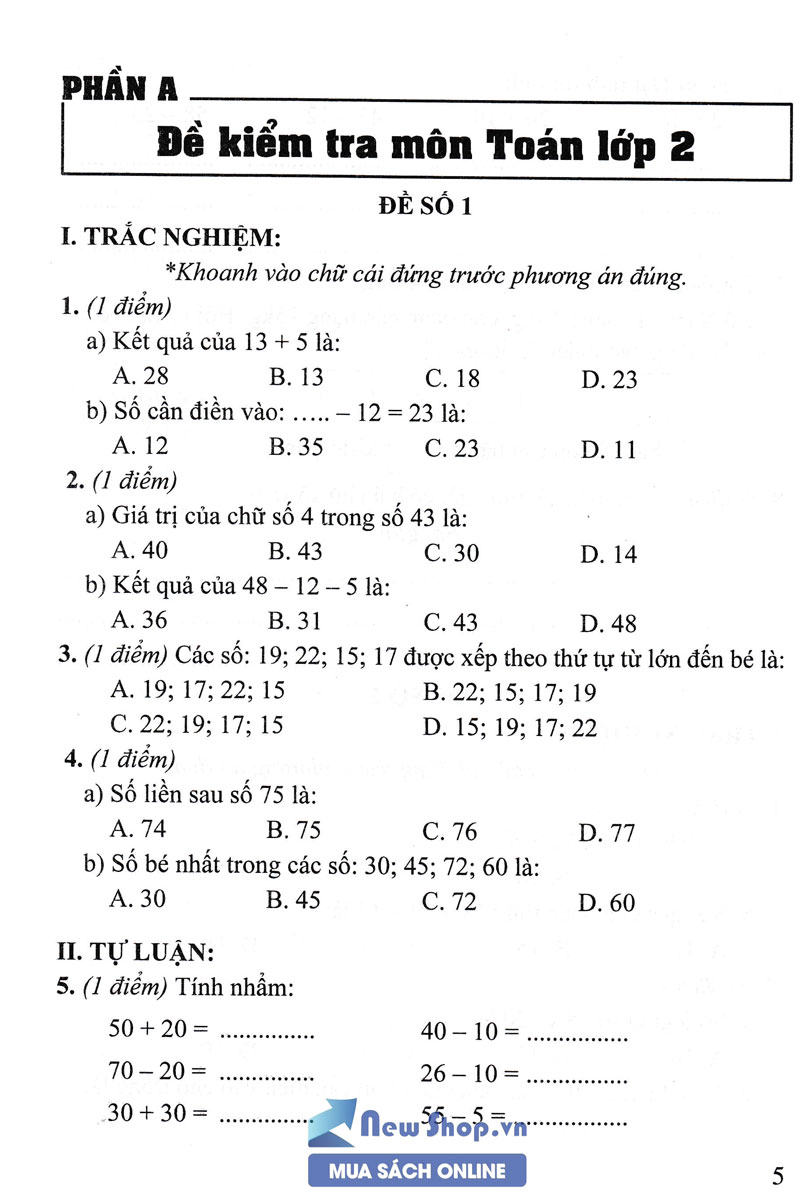 Mua tại TiktokBộ Đề Kiểm Tra Môn Toán Lớp 2 (Theo Chương Trình Giáo Dục Phổ Thông Mới - Bám Sát SGK Kết Nối Tri Thức Với Cuộc Sống) Từ năm học 2021-2022, các em học sinh lớp 2 được học sách giáo khoa theo Chương Trình Giáo Dục Phổ Thông Mới. Mục tiêu của chương trình mới là phát triển năng lực, phẩm chất của học sinh. Do vậy, nhằm hỗ trợ quý thầy cô và các bậc phụ huynh có thêm tài liệu hướng dẫn các em học sinh học tốt môn Toán lớp 2,chúng tôi đã tổ chức biên soạn cuốn sách. Cuốn sách gồm 2 phần chính: Phần A: Đề kiểm tra môn toán lớp 2 Phần B: Gợi ý tham khảo Hi vọng rằng cuốn sách sẽ là tài liệu tham khảo hữu ích đối với giáo viên và học sinh lớp 2 .