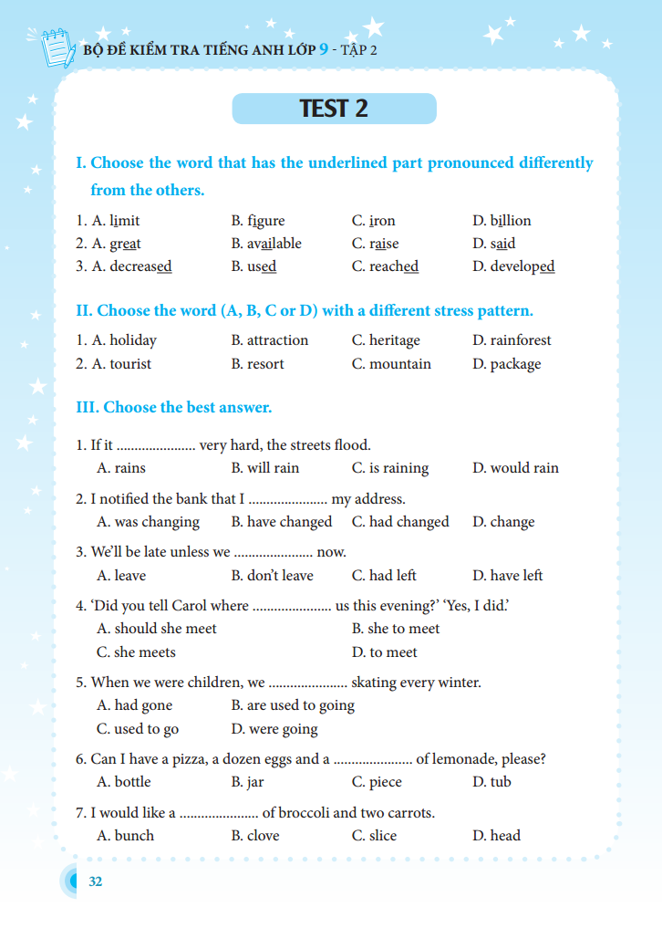 Mua tại TiktokBộ Đề Kiểm Tra Tiếng Anh Lớp 9 - Tập 2 - Có Đáp Án (Tái Bản Lần 1)