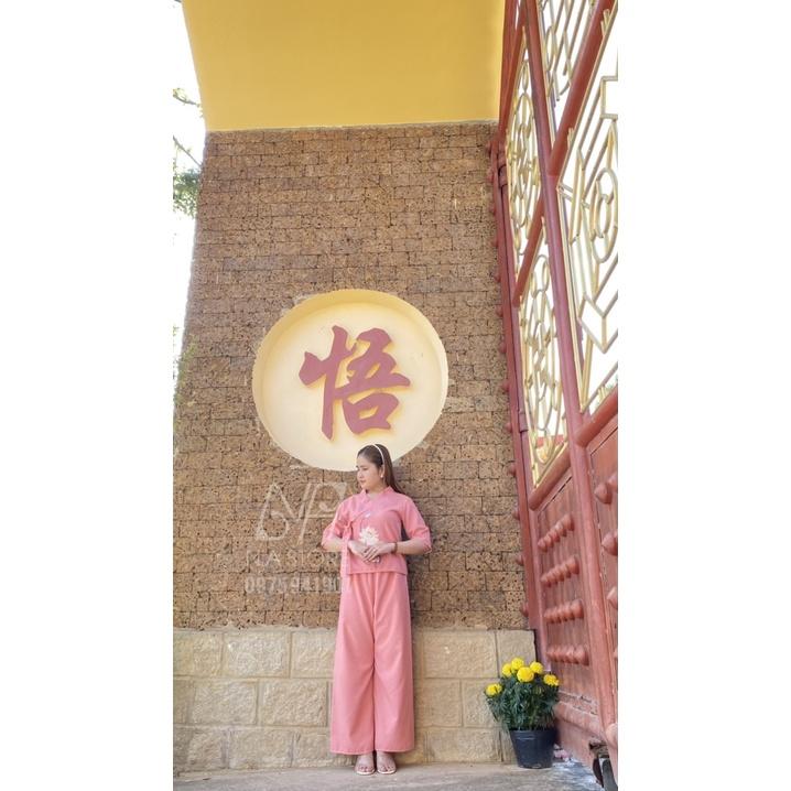 Bộ đi chùa thêu chữ tâm | Pháp Phục Phương Linh
