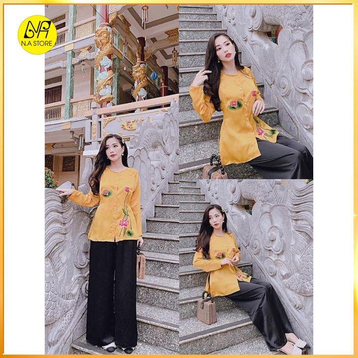 ✨Bộ Đi Lễ Chùa - Đồ Lam Nữ Đi Chùa Đẹp Cao Cấp Trang Nhã Vải Lụa Thêu Sen Ngọc 2021 Dành Cho Phật Tử AL017