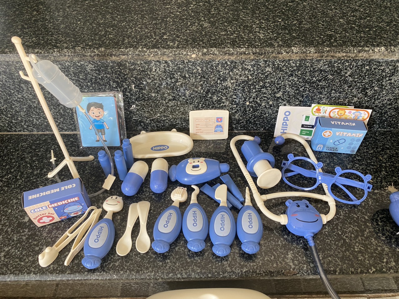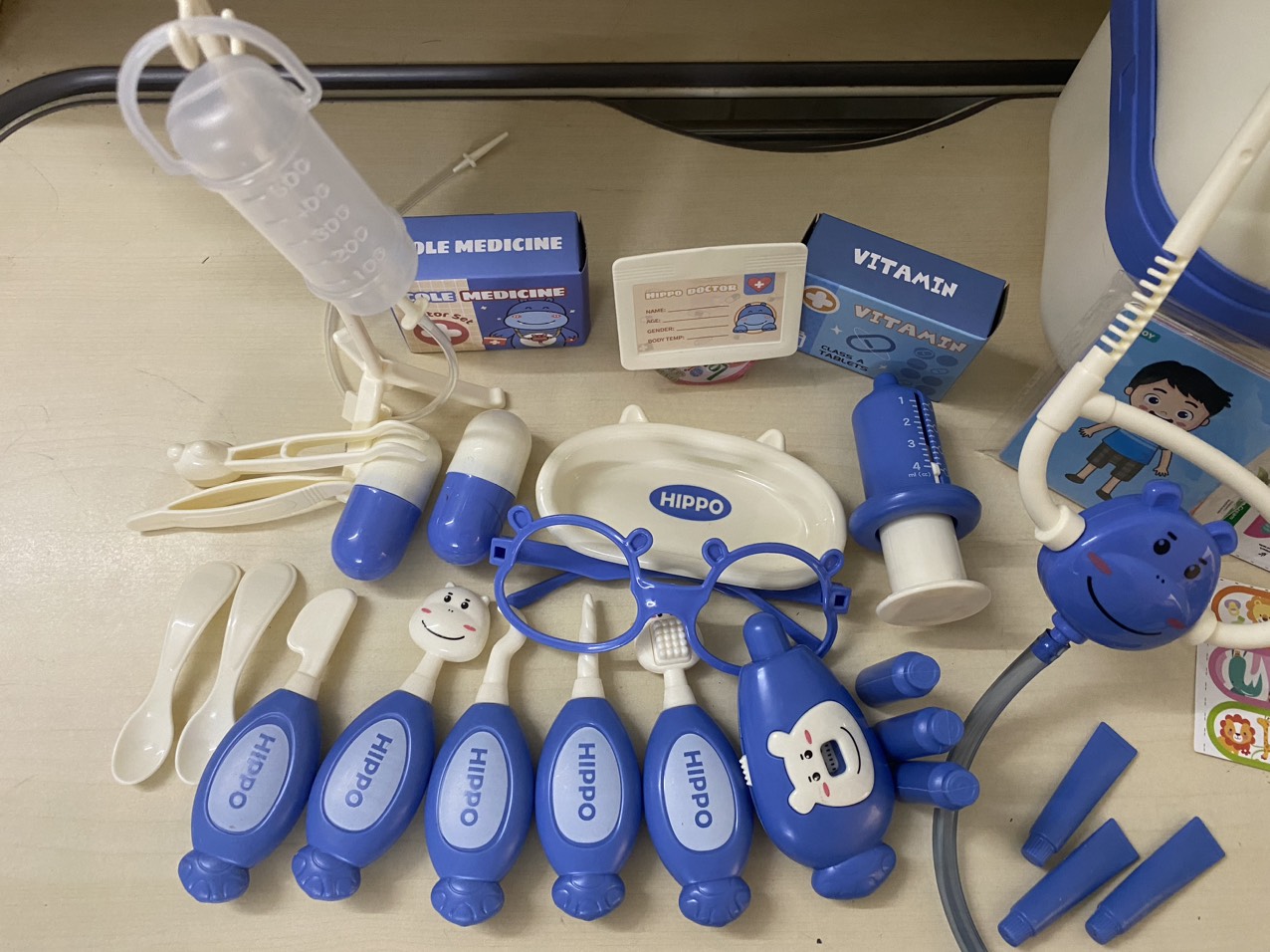 • Có thuốc, bàn chải, kem đánh răng và có rất nhiều thiết bị y thật để bé nhập vai làm bác sĩ.