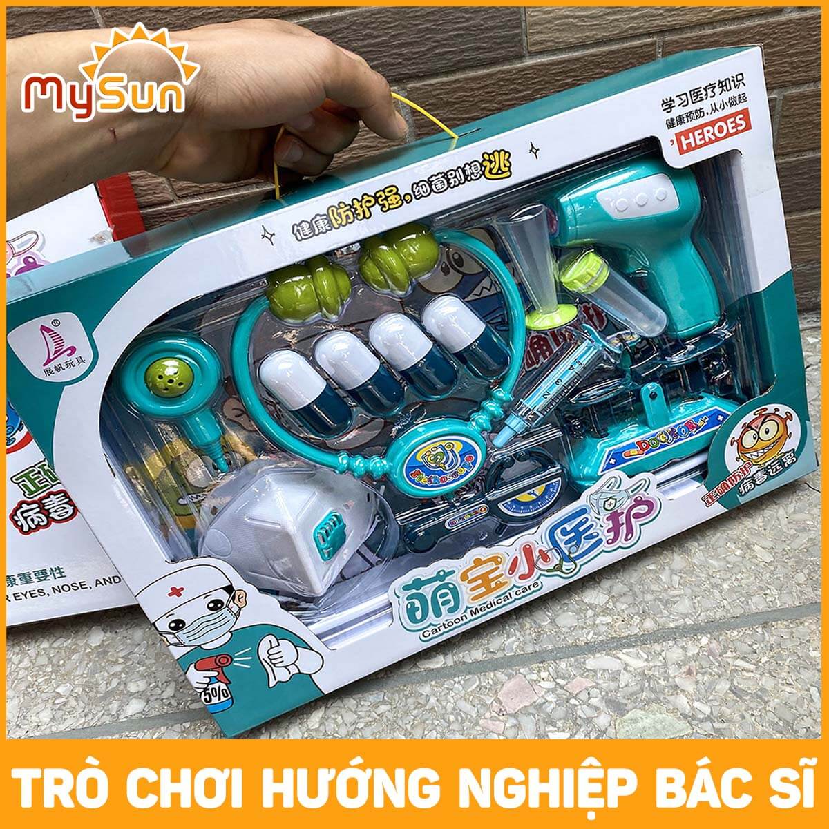 - Một bộ được đóng trong hộp màu kín, đẹp kích thước lớn phù hợp làm quà tặng. THÔNG SỐ ĐỒ CHƠI BÁC SĨ KHÁM BỆNH CHO BÉ MYSUN