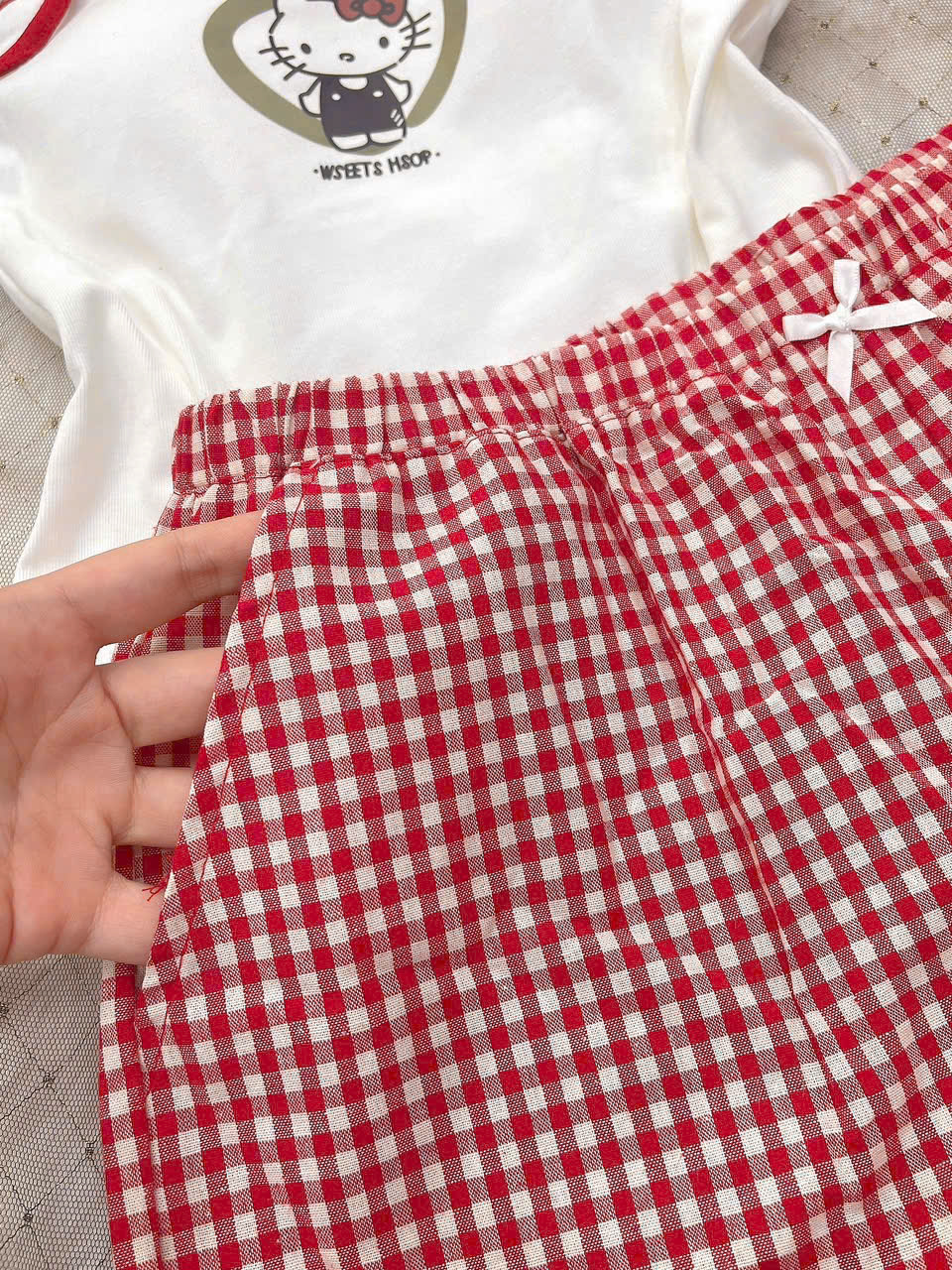 Thương hiệu: Sanny House Tên sản phẩm: Bộ đồ ngủ Chất liệu: cotton cao cấp mềm mịn, co giãn, thấm hút tốt Kiểu dáng: gợi cảm, trẻ trung, hiện đại Màu: trắng caro đỏ Size: