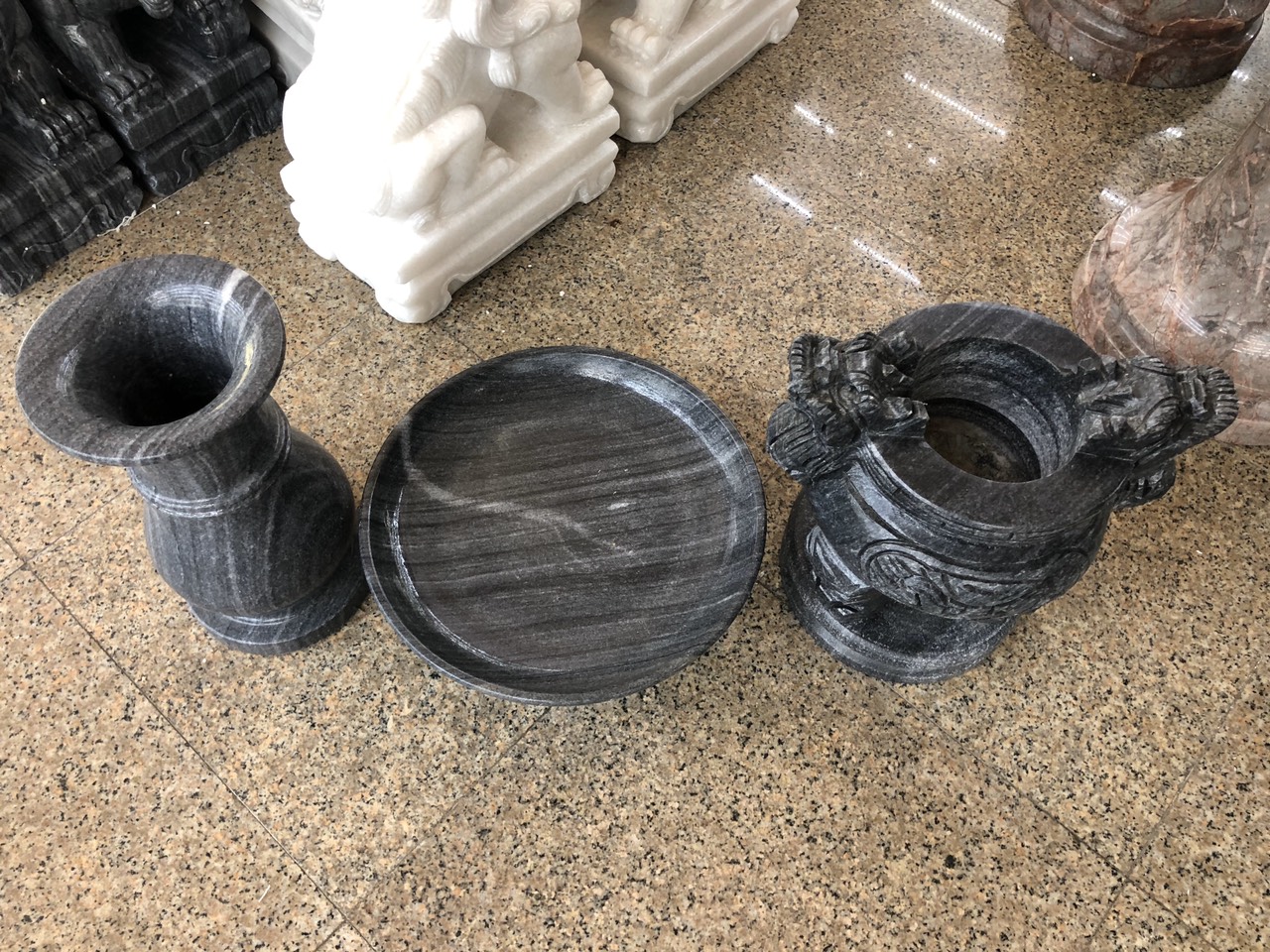 ✨Bộ đồ thờ cúng đá cẩm thạch vân đen size 30 cm