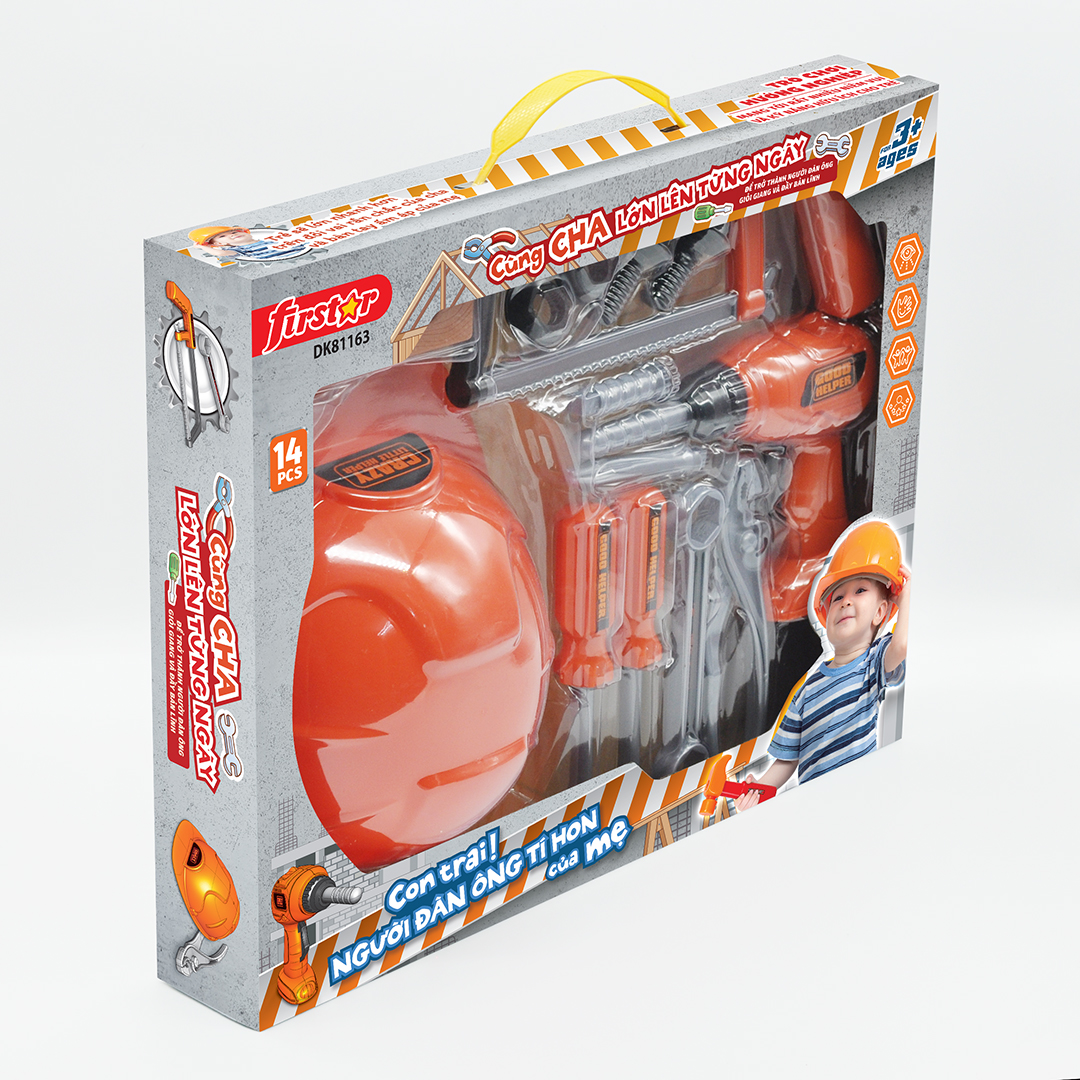 Mua tại TiktokBộ dụng cụ đồ chơi cho bé, DK 81163 Được mô phỏng với các dụng cụ cần thiết của các chú kỹ sư, công nhân, thợ cơ khíúp các bé trai tha hồ thỏa sức đóng vai và sáng tạo trong việc lắp ráp, sửa chữa các máy móc, đồ dùng vật dụng thường ngày. Thông qua trò chơi giúp bé định hướng nghề nghiệp và mang tới rất nhiều niềm vui cũng như kỹ năng hữu ích cho trẻ; Giúp trẻ bồi dưỡng nhận thức trực quan Phát triển sự phối hợp giữa tay và mắt Tăng cường ý thức trách nhiệm với cộng đồng Nhập vai và trải nghiệm cuộc sống Thông tin sản phẩm: