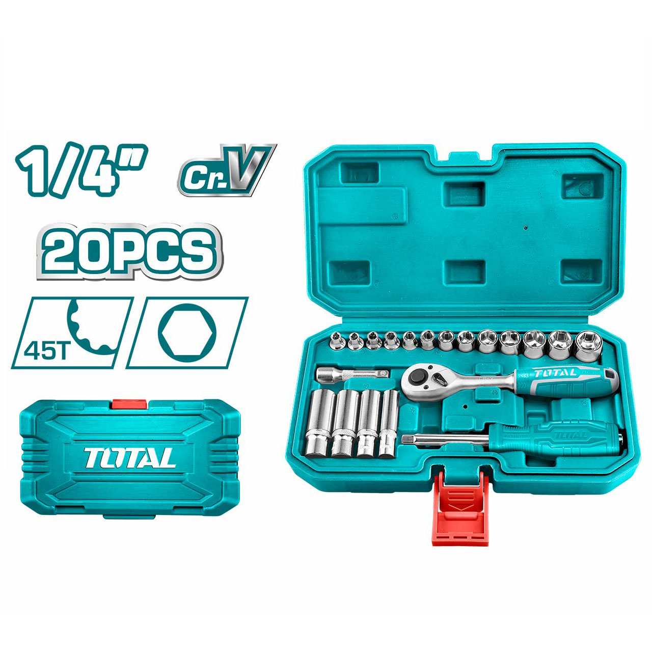 - Tên sản phẩm: Bộ khẩu 20 chi tiết đầu tuýp 1/4'' làm từ thép CR-V đa năng, tiện lợi TOTAL THT141201