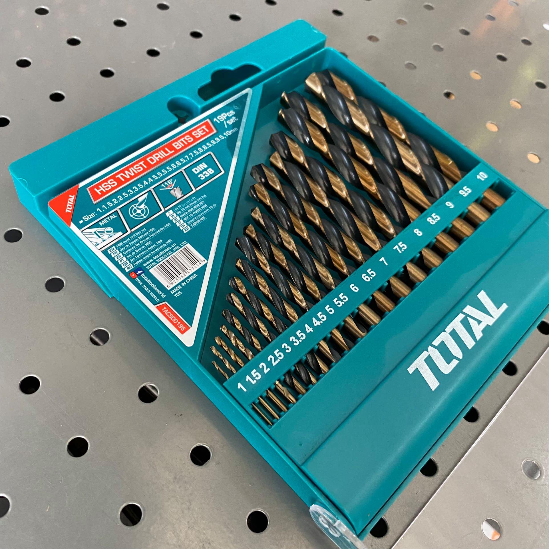 -Bộ 19 mũi khoan HSS gồm các size: 1,1.5,2,2.5,3,3.5,4,4.5,5,5.5,6,6.5,7,7.5,8,8.5,9,9.5,10 mm,