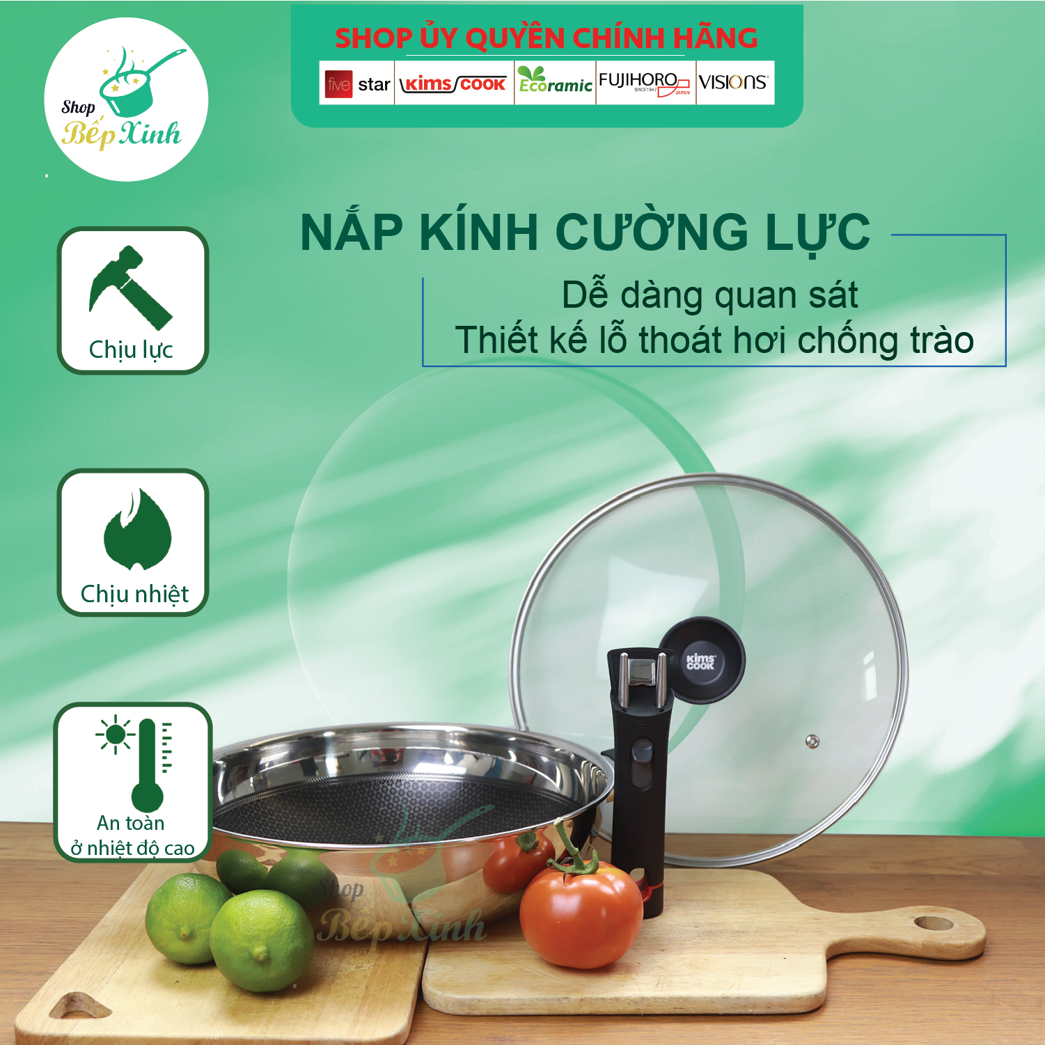 Quánh chống dính Inox 304 Kims Cook Noon Song 2 mặt 3 lớp đúc liền đáy từ nắp kính size 16cm N316M