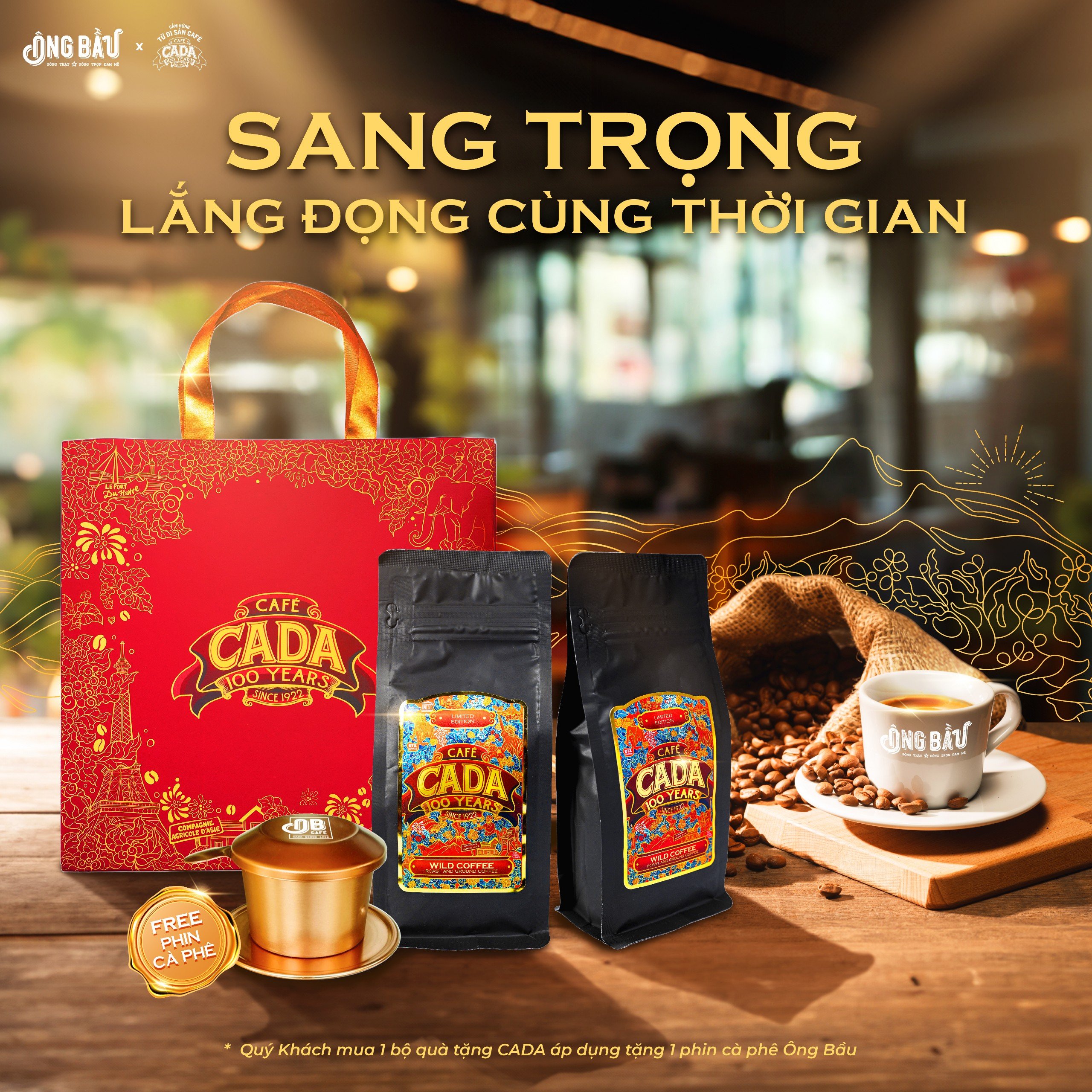 CÀ PHÊ CADA - GIỌT ĐẮNG CAO NGUYÊN ĐẠI NGÀNHƯƠNG VỊ SANG TRỌNG CÙNG THỜI GIAN"BỘ QUÀ CADA 100 NĂM" chính thức có mặt tại chuỗi cửa hàng Cà Phê Ông Bầu! Những hạt cà phê thanh tao nhẹ nhàng, hòa quyệ...