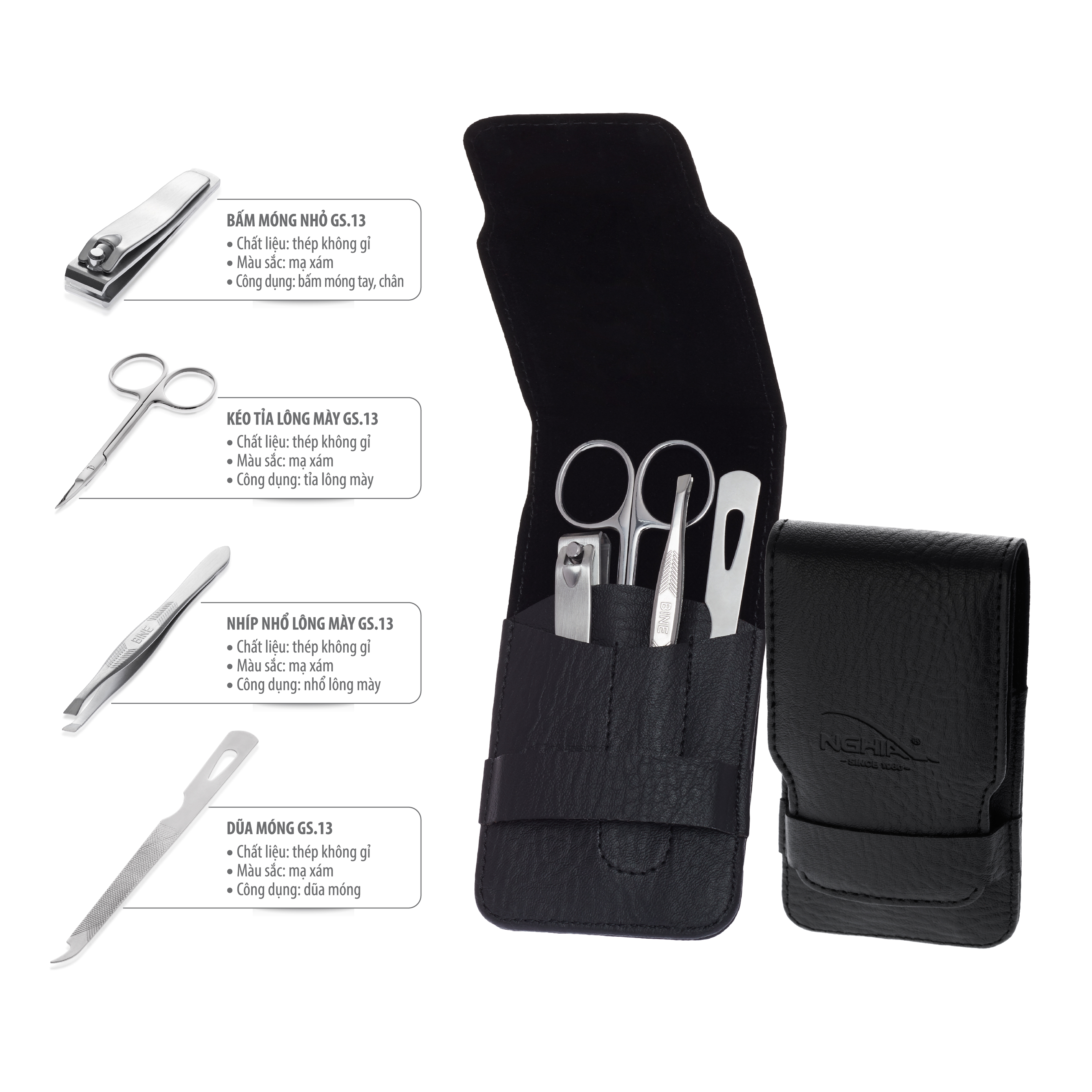 ✨Bộ Quà Tặng (Kéo Cắt Tỉa Lông Mày - Bấm Móng - Dũa - Nhíp) Thép Không Gỉ Cao Cấp KỀM NGHĨA GS.13 PT