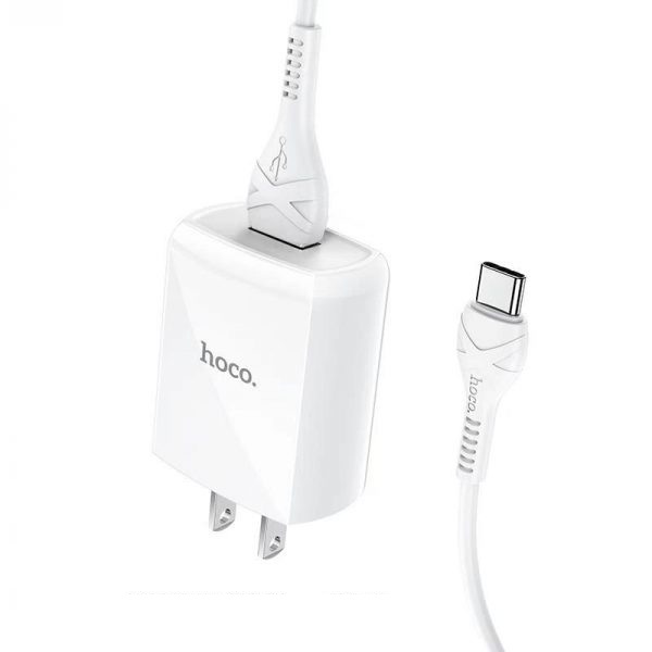 Bộ sạc 2.4A Hoco DC13 chuôi dẹt 1 cổng Usb kèm dây sạc Type-C dài 1M cho Android Hoco DC13 có chân cắm US dòng sạc 2.4A và 1 cổng USB đạt tiêu