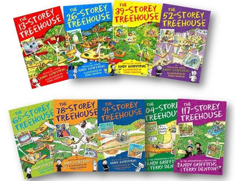 Join New York Times-bestselling author Andy Griffiths and illustrator Terry Denton on a series of wild storytelling adventures that Publishers Weekly described as “Anarchic absurdity at its best.” Andy and Terry live in a tree. And when we say “tree,” we mean “treehouse” and when we say “treehouse,” we don’t mean just any old treehouse, we mean the most amazing treehouse in the world! It’s filled with things like shark-invested see-through swimming pools, secret underground labs, and marshmallow machines that follow you around and automatically shoot marshmallows into your mouth whenever you’re hungry. The treehouse is also where they make books together. Andy writes the words and Terry draws the pictures…or they would if it weren’t for all the invading pirates, giant gorillas, out of control inventions and evil vegetable attacks that keep distracting them! The 13-Storey Treehouse The 26-Storey Treehouse The 39-Storey Treehouse The 52-Storey Treehouse The 65-Storey Treehouse The 78-Storey Treehouse The 91-Storey Treehouse The 104-Storey Treehouse The 117-Storey Treehouse