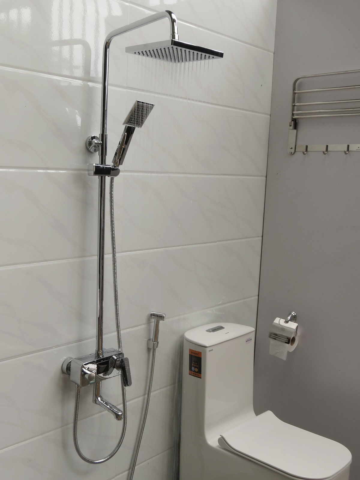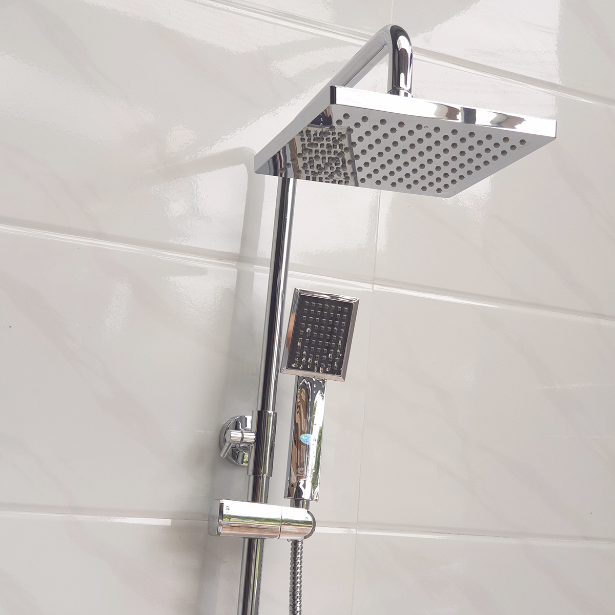 Đài sen và tay sen đi kèm được làm tự nhựa ABS an toàn cho sức khỏe người sử dụng. Mạ Chrome sáng bóng không hoen ố khi sử dụng