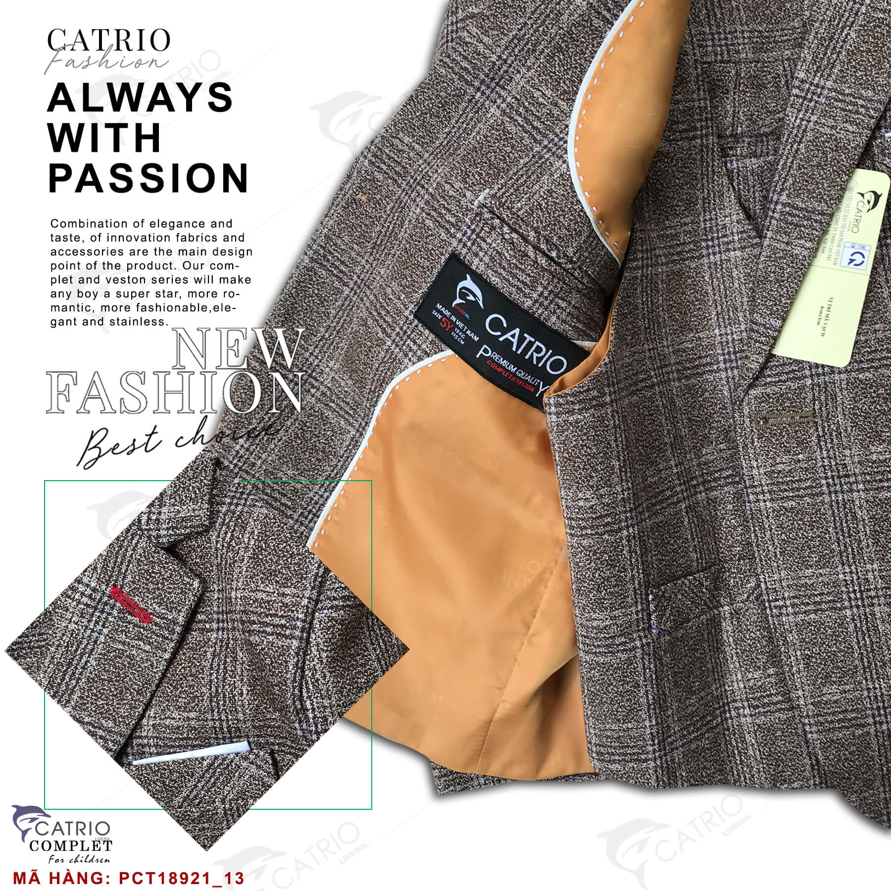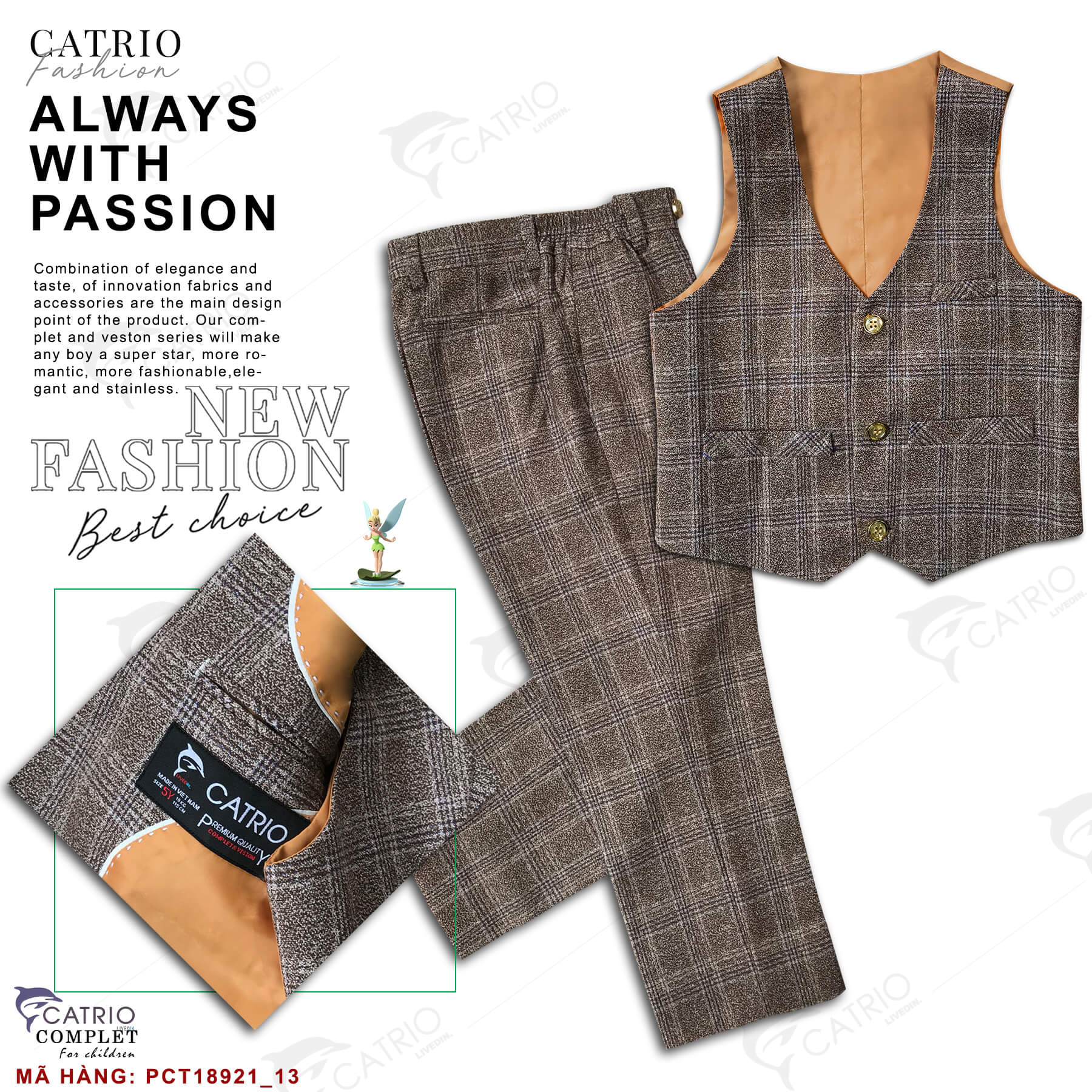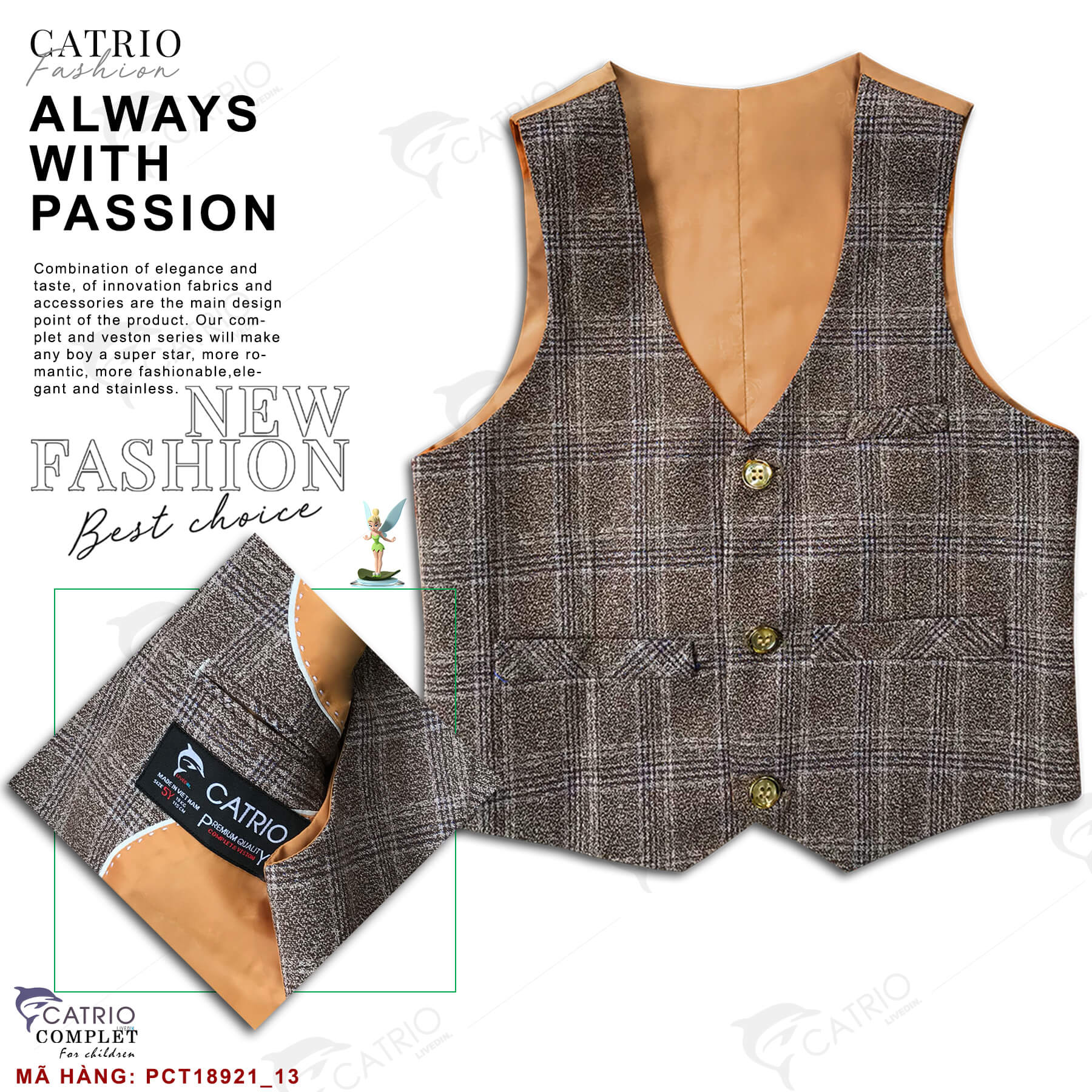 ✨BỘ SUIT TRẺ EM CATRIO PCT18921/13 là bộ đồ vest bé trai CATRIO TỪ 2 TUỔI ĐẾN 7 TUỔI (12KG_ 28KG) gồm 3 chi tiết áo vest bé trai + quần dài bé trai+áo gilet trẻ em, vải dạ mềm mượt để bé mặc biểu diễn, dự lễ tiệc cưới hỏi tết