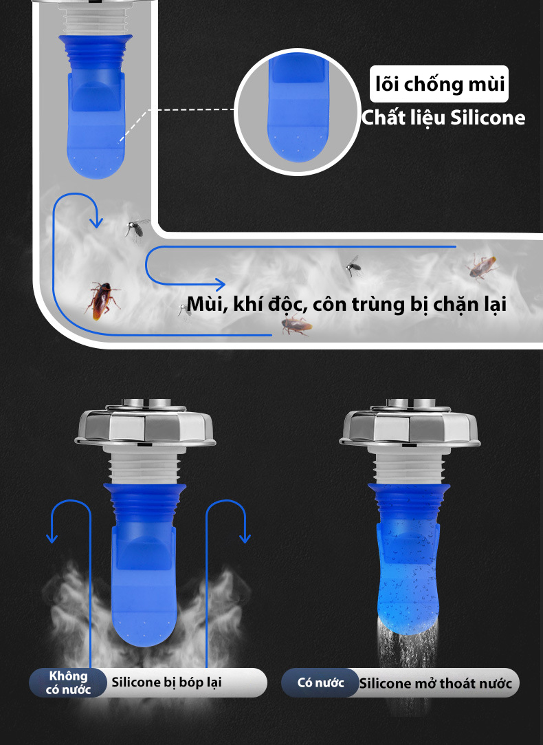 - Silicone chống mùi, ngăn côn trùng (Chọn thêm) Lưu ý: Có 2 lựa chọn thuộc tính khác nhau như có kèm Silicone ngăn mùi và không kèm, vui lòng chọn loại đúng nhu cầu. Sản phẩm thoát nước tốt, ngăn mùi, ngăn côn trùng hiệu quả ngay khi lắp. Khi nhận và sử dụng sản phẩm, nếu quý khách thao tác chưa được hoặc thấy có bất kỳ điểm nào khác với mô tả, video đã đăng tải vui lòng phản hồi lại Shop qua chat và nhân tiện xin quý khách để lại đánh giá về Shop nhé. Shop còn nhiều loại thoát nước khác nhau, Quý khách vui lòng truy cập vào gian hàng để xem nhé Cảm ơn quý khách. Sản phẩm giống mô tả, hình ảnh và Video Cam kết: Gian hàng uy tín được Tiki công nhận. Mọi hư hỏng, lỗi khi nhận hàng và trong quá trình sử dụng được đảm bảo theo chính sách của Tiki và Nhà bán