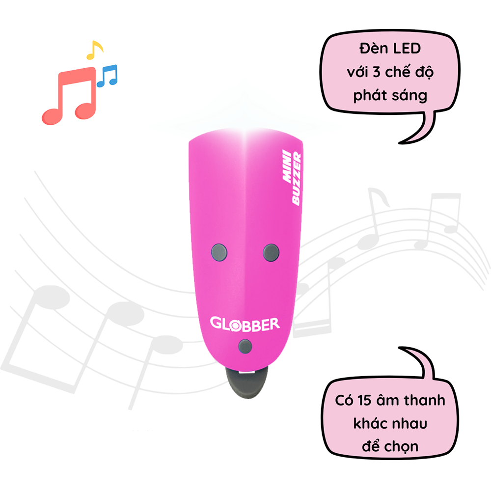 BỘ TÍN HIỆU CÒI VÀ ĐÈN PHÁT SÁNG GLOBBER MINI BUZZER - HỒNG ️ Thương hiệu: GLOBBER – PHÁP ️ Mã sản phẩm: 530-110 15 loại âm thanh khác nhau bao gồm tiếng động