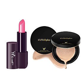 ✨Bộ trang điểm Kem phấn nước mềm mỏng tự nhiên và Son lì có dưỡng It's well plus