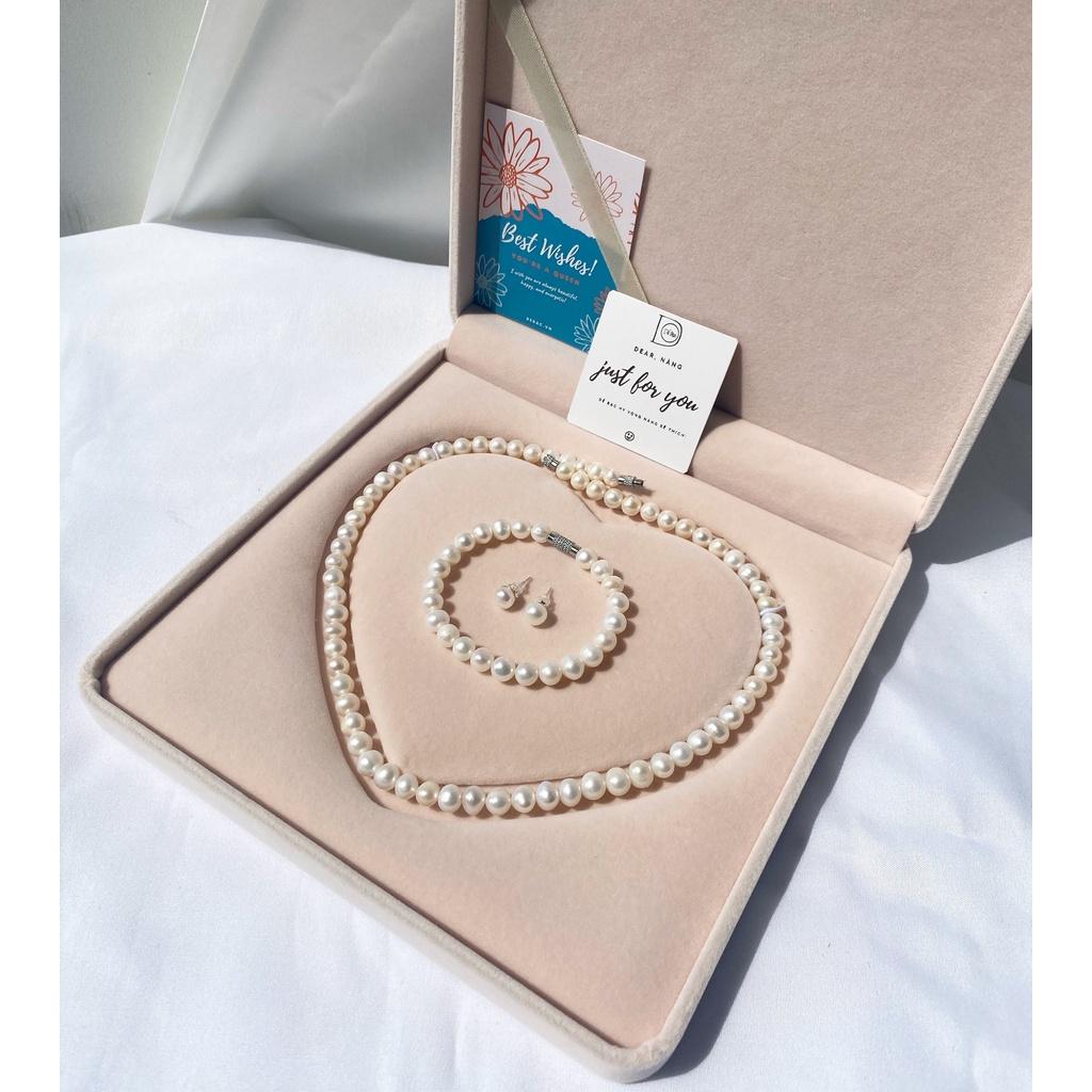 Bộ Ngọc Trai Trắng Sang Trọng ❤️❤️Ngọc 7-8li ovan, chất liệu bạc ✅