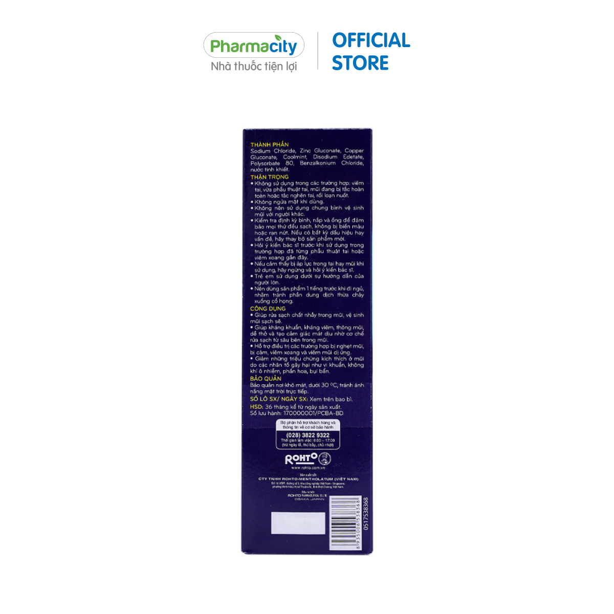 - Nên dùng sản phẩm 1 tiếng trước khi đi ngủ, nhằm tránh phần dung dịch thừa chảy xuống cổ họng. Bảo quản: Bảo quản nơi khô mát, dưới 30°C, tránh ánh nắng mặt trời trực tiếp. Quy cách đóng gói: 01 chai Rohto NoseWash 400ml kèm 01 bình vệ sinh mũi Easy Shower Xuất xứ thương hiệu: Nhật Bản Sản xuất tại: Việt Nam *Sản phẩm 100% chính hãng, mẫu mã có thể thay đổi theo lô hàng của NSX