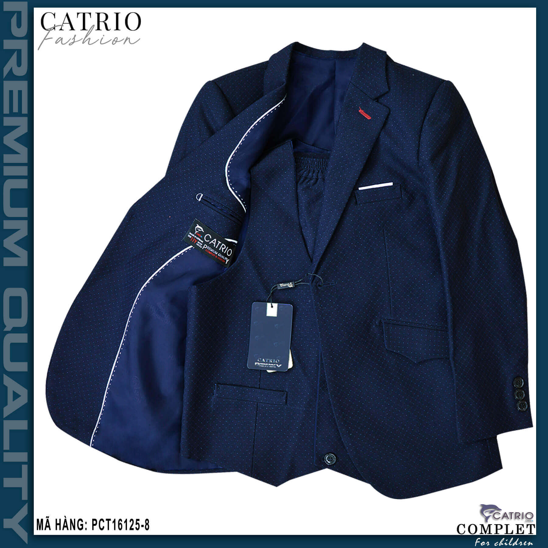 ✨BỘ VEST BÉ TRAI CATRIO PCT16125/8 LÀ BỘ COMPLET TRẺ EM từ 6 tuổi đến 10 tuổi (25kg đến 35kg) thuộc bộ sưu tập quần áo trẻ em trang trọng cho mùa lễ hội, tết, tiệc cưới, sự kiện sinh nhật, được làm bằng vải dạ cao cấp nhất, đẹp đến từng chi tiết