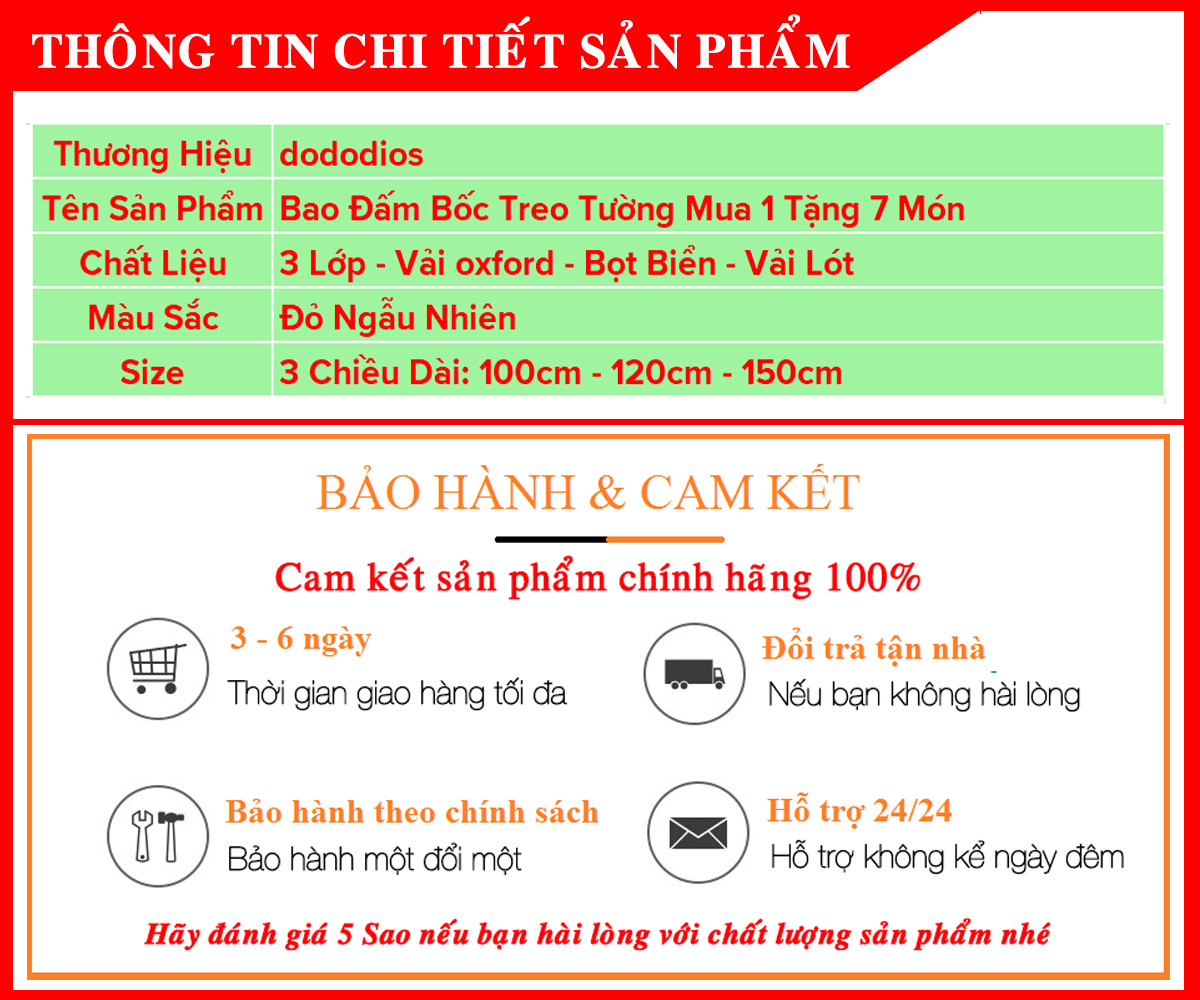 Mô tả - Vỏ Bao Đấm Bốc Treo Tường Mua 1 Tặng 7 Cao Cấp Chính Hãng Dododios: