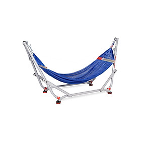 Ống thép, sơn tĩnh điện. đường kính 27.0mm, chiều dày 0.9mm. 4 thanh chống uốn cong, thẩm mỹ, thông thoáng, an toàn. Võng lưới sợi 100% polyester, mềm mịn, có độ co giãn, lưới Xuất