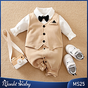 ✨Body bé trai quý tộc dáng gile vest lịch lãm, bộ áo liền quần cho sinh nhật sự kiện, chất cotton 100% dày dặn đẹp | MS25