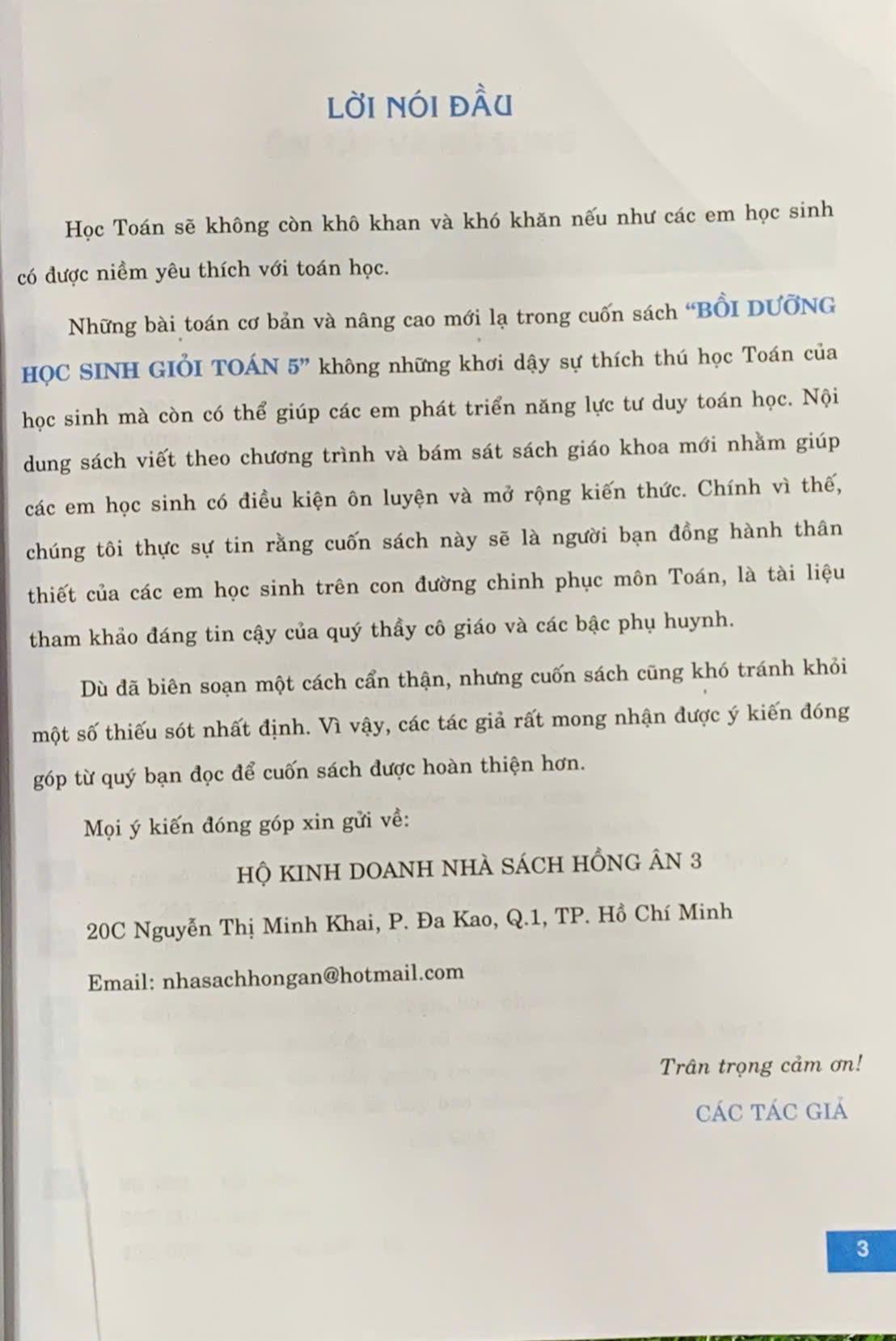 Bồi dưỡng học sinh giỏi Toán 5 theo chủ đề ( Dùng chung cho các bộ SGK hiện hành) (HA-MK) Chi Tiết Sản Phẩm NHÀ PHÁT HÀNH : Nhà Sách Hồng Ân NHÀ XUẤT BẢN