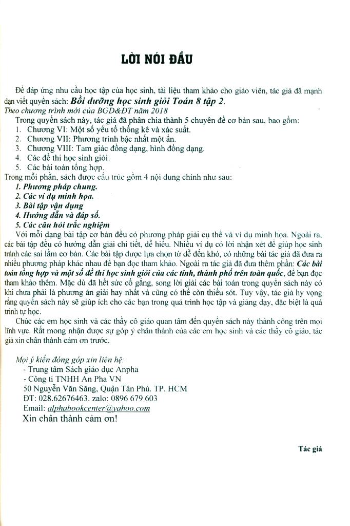 Mua tại TiktokBồi Dưỡng Học Sinh Giỏi Toán 7 - Tập 2 Nhằm giúp các em học sinh lớp 7 yêu tích toán học hơn thông qua việc giải những bài toán bằng nhiều cách khác nhau. Trong học toán và giải toán, việc tìm thêm những lời giải khác hau cho một bài tóan mang lại sự hứng thú và phát triển tư duy cho học sinh. Từ đó quyển sách được biên soạn với mong muốn giúp các em học sinh lớp 6 yêu tích toán học hơn thông qua việc giải những bài toán bằng nhiều cách khác nhau.