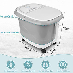 Tính Năng Hẹn Giờ Tự Động: Bồn ngâm chân có khả năng hẹn giờ tự động từ 10 đến 60 phút, linh hoạt và thuận tiện cho người sử dụng.
