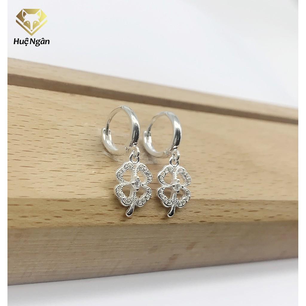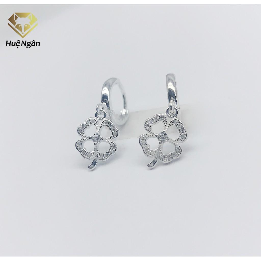 Khuyên tai bạc 925 cao cấp Cỏ 4 lá may mắn đính đá tinh tế