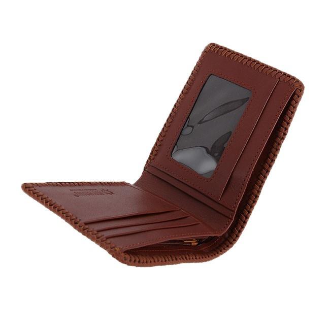 Ví/Bóp nam Huy Hoàng da bò đan viền màu nâu 2136