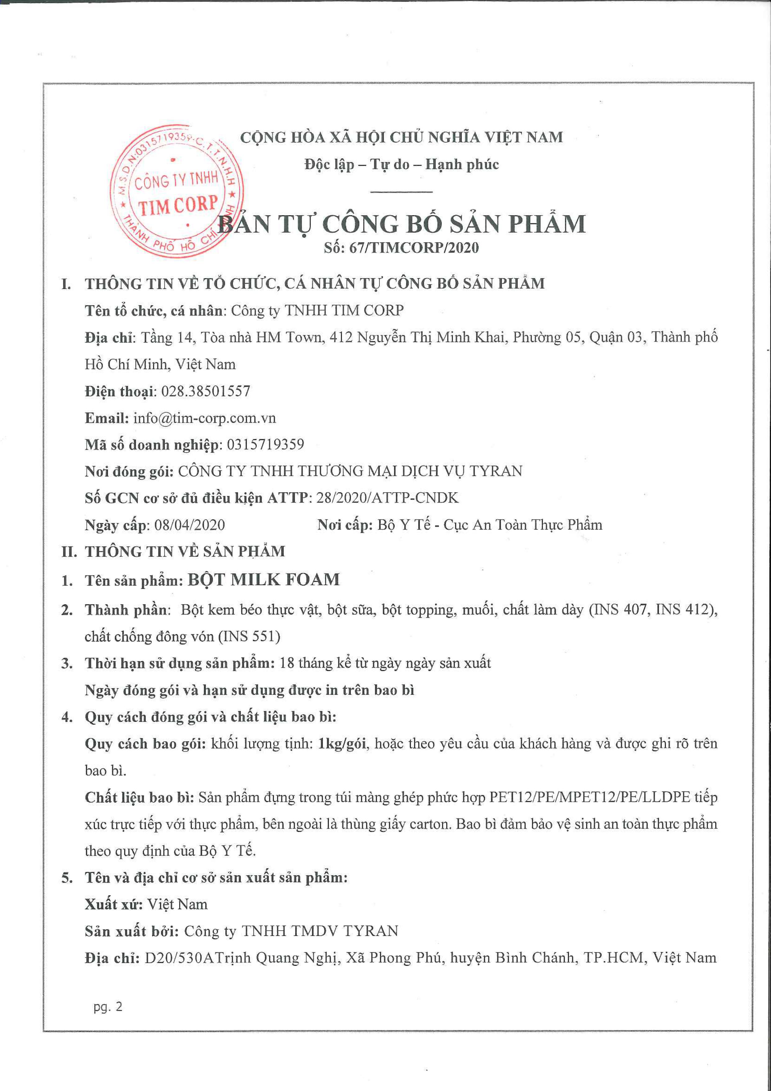 Bột kem topping vị muối biển sản phẩm mới của Cty Việt Tuấn Quốc Tế.