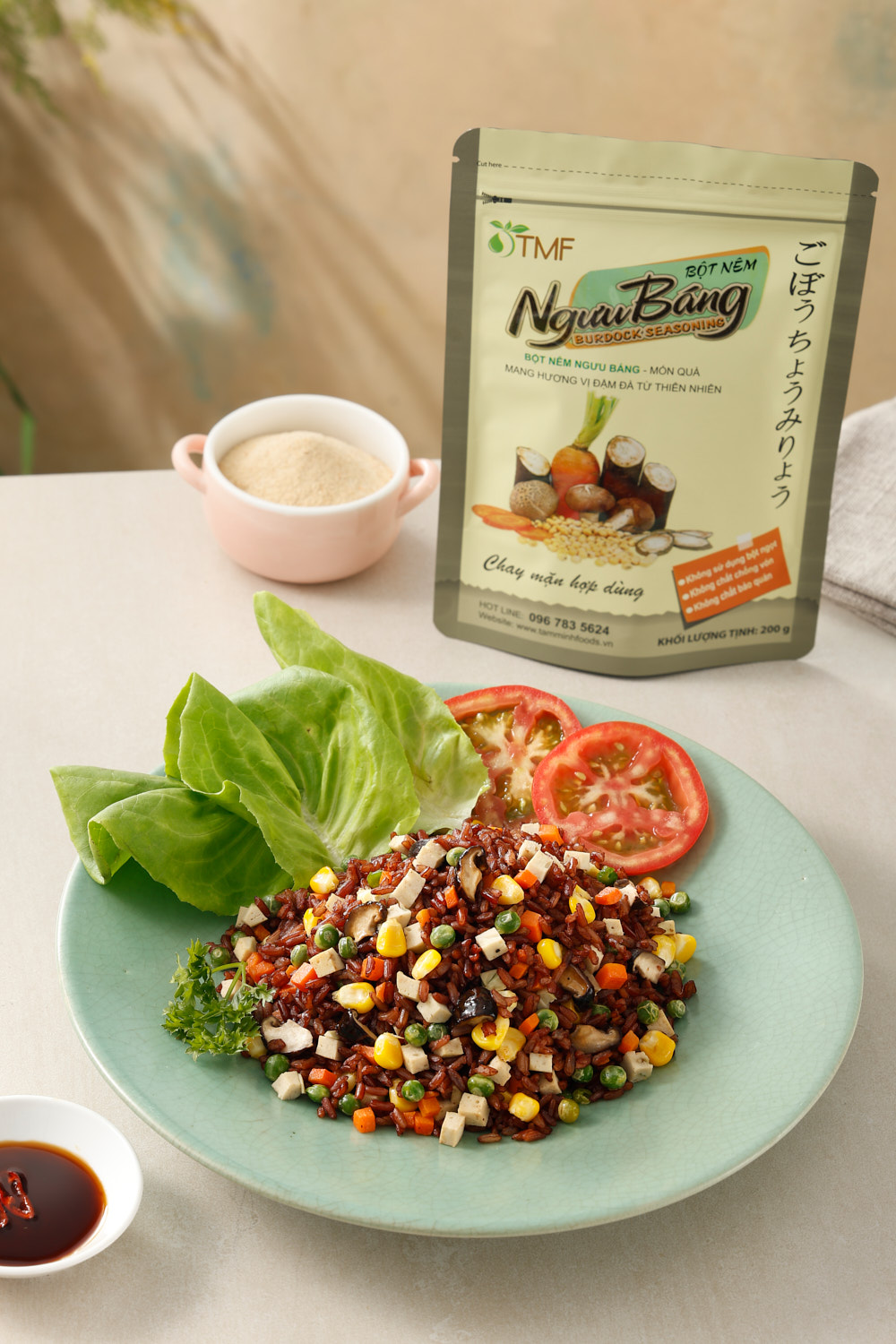 Bột nêm Ngưu Báng – Món quà mang hương vị đậm đà từ thiên nhiên. Thành phần: muối, ngưu báng 30%, nấm đông cô, cà rốt, protein đậu nành, chiết xuất lúa mạch, đường vàng.