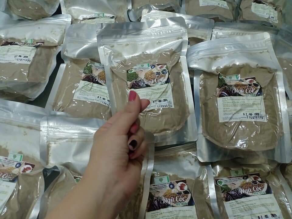 - Cuối cùng, ngũ cốc sạch đã được Sở Y Tế chứng nhận VSATTP và DUY NHẤT CHỈ 7 LOẠI HẠT MÀ KHÔNG CÓ CHẤT GÌ KHÁC Sản phẩm làm ra là cả một tâm huyết. Mong muốn mang tới những sản phẩm chuẩn thiên nhiên thực sự chất lượng, sạch và tốt. Đó đang và sẽ luôn là hướng đi mà Mẹ Ken thực hiện. THÀNH PHẦN: Hạt sen luôn tim, mè đen, đậu đen xanh lòng, đậu đỏ, đậu xanh, đậu cút, đậu ván, đậu nành, gạo huyết rồng CÔNG DỤNG: Tăng cân, giảm cân, cho trẻ ăn dặm, cung cấp vitamin, khoáng chất, giúp ăn ngon ngủ tốt, da dẻ mềm mại, chống lão hóa, dễ tiêu hóa, bổ dưỡng, giúp nhuận tràng tốt. Bổ sung chất dinh dưỡng cho người già yếu. Lợi sữa cho mẹ đang nuôi con nhỏ. Ăn dặm cho trẻ CÁCH DÙNG: ĐỂ TĂNG CÂN : Nắng nóng ăn uống dễ thiếu chất, lại dễ bị nhiệt. Sau khi ăn sáng hoặc trước khi ngủ ta nên bổ sung 1 ly BỘT NGŨ CỐC SIÊU SẠCH VÀ BỔ DƯỠNG MẸ KEN. MÈ ĐEN và HẠT SEN giúp cơ thể giải nhiệt, bồi bổ cơ thể, da dẻ hồng hào, giúp ngủ ngon, chống táo bón, … Các loại ĐẬU ĐEN, ĐẬU XANH, ĐẬU ĐỎ, ĐẬU NÀNH giúp cơ thể bổ sung hầu như đầy đủ tất cả khoáng chất, sinh tố A,B, C, … dưỡng nhan, giải độc, thanh nhiệt và tăng sức đề kháng. Ngoài ra GẠO LỨT HUYẾT RỒNG có lớp cám dày giúp bổ tỳ, ngăn ngừa cảm ho và chứa nhiều vitamin B, … Bên cạnh đó, ĐẬU NÀNH và MÈ ĐEN còn giúp tăng size vòng 1. ĐỂ GIẢM CÂN : Việc nhịn ăn để giảm cân khiến cơ thể thiếu chất, giảm sức đề kháng, da dẻ xấu… Uống 1 ly BỘT NGŨ CỐC SIÊU SẠCH VÀ BỔ DƯỠNG MẸ KEN thay bữa sáng, bữa trưa ăn uống như bình thường, bữa tối uống 1 ly và sau đó ăn 1 cái trứng lộn hoặc ăn nhẹ trước 7h tối. Dưỡng chất tự nhiên isoflavones có trong ĐẬU NÀNH giúp cân bằng nội tiết tố nữ, ức chế tích tụ chất béo ở bụng, đùi, mông, giúp vóc dáng phụ nữ mềm mại, nữ tính hơn mà vòng 1 vẫn tăng. Eo nhỏ nhưng vòng 1 lại tăng, mè đen giúp da mềm mịn, trắng sang. Các loại ĐẬU ĐEN, ĐẬU XANH, ĐẬU ĐỎ, ĐẬU NÀNH giúp cơ thể bổ sung hầu như đầy đủ tất cả khoáng chất, sinh tố A, B, C, … dưỡng nhan, giải độc, thanh nhiệt và tăng sức đề kháng. Ngoài ra GẠO LỨT HUYẾT RỒNG có lớp cám dày giúp bổ tỳ, ngăn ngừa cảm ho và chứa nhiều vitamin B, … Giảm cân nhưng da dẻ lại đẹp và hồng hào. Nếu muốn giảm cân nhiều ta cứ uống trước bữa ăn vì Ngũ cốc nó gây no làm mình hạn chế thèm ăn và ít ăn lại. Nhưng bắt buộc phải uống 1 ly ngũ cốc thay buổi sáng. LỢI SỮA: pha với sữa ông thọ, uống nóng, ngày từ 1-2 ly, uống nhiều nước. ĂN DẶM: cho trẻ 7 tháng tuổi trở lên ăn dặm. Pha với nước sôi và 1 thìa cà phê dầu ăn BẢO QUẢN: bên ngoài nhiệt độ thường HẠN SỬ DỤNG: 12 tháng