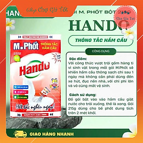 Thông tin sản phẩm Tên sản phẩm : Thông tắc hầm cầu M. Phốt Hando 215gr Công dụng :Thông tắc bồn cầu toilet, khử hôi hầm cầu Hạn sử dụng : 3 năm kể từ