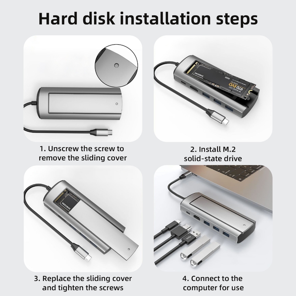 MÔ TẢ SẢN PHẨM Cổng loại C 11 trong 1: Tương thích HDMI + USB3.0 * 1 + USB2.0 * 3 + PD 87W + TF + SD + 100M RJ45 + AUX +